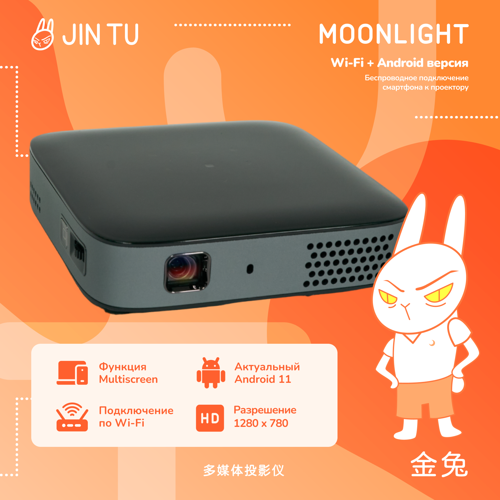Домашний портативный DLP проектор JIN TU Moonlight HD Android 11 интересное: