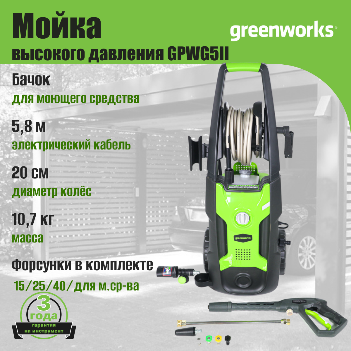 Мойка высокого давления электрическая Greenworks GPWG5II