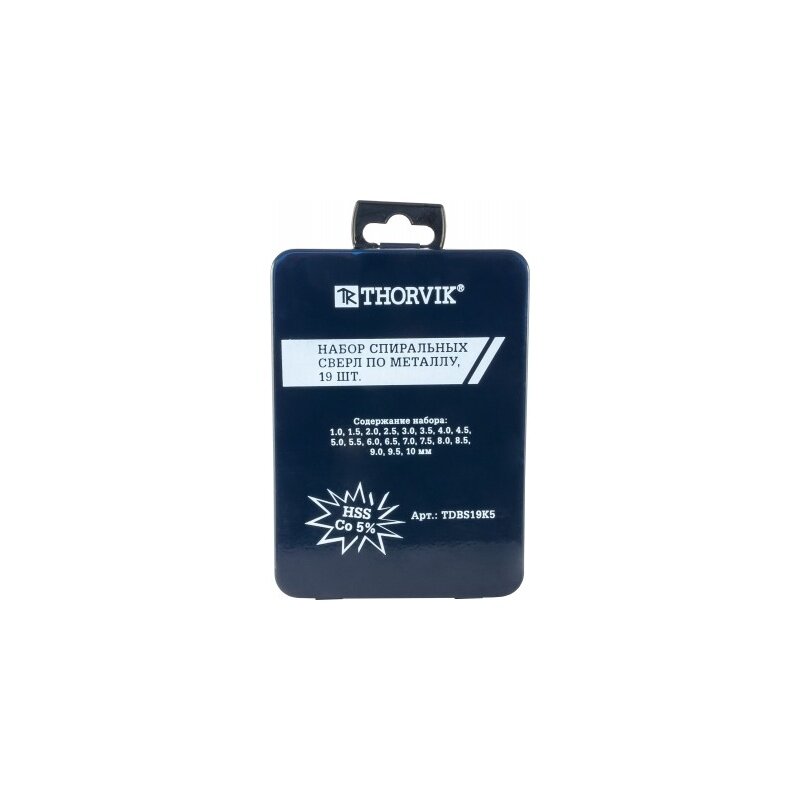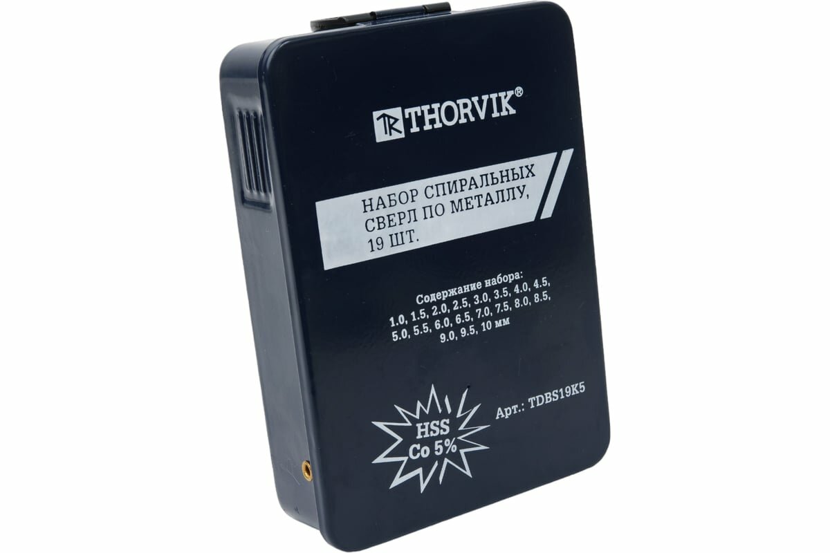 Набор спиральных сверл по металлу HSS Co в металлическом кейсе, d1.0-10.0 мм, 19 предметов TDBS19K5 Thorvik
