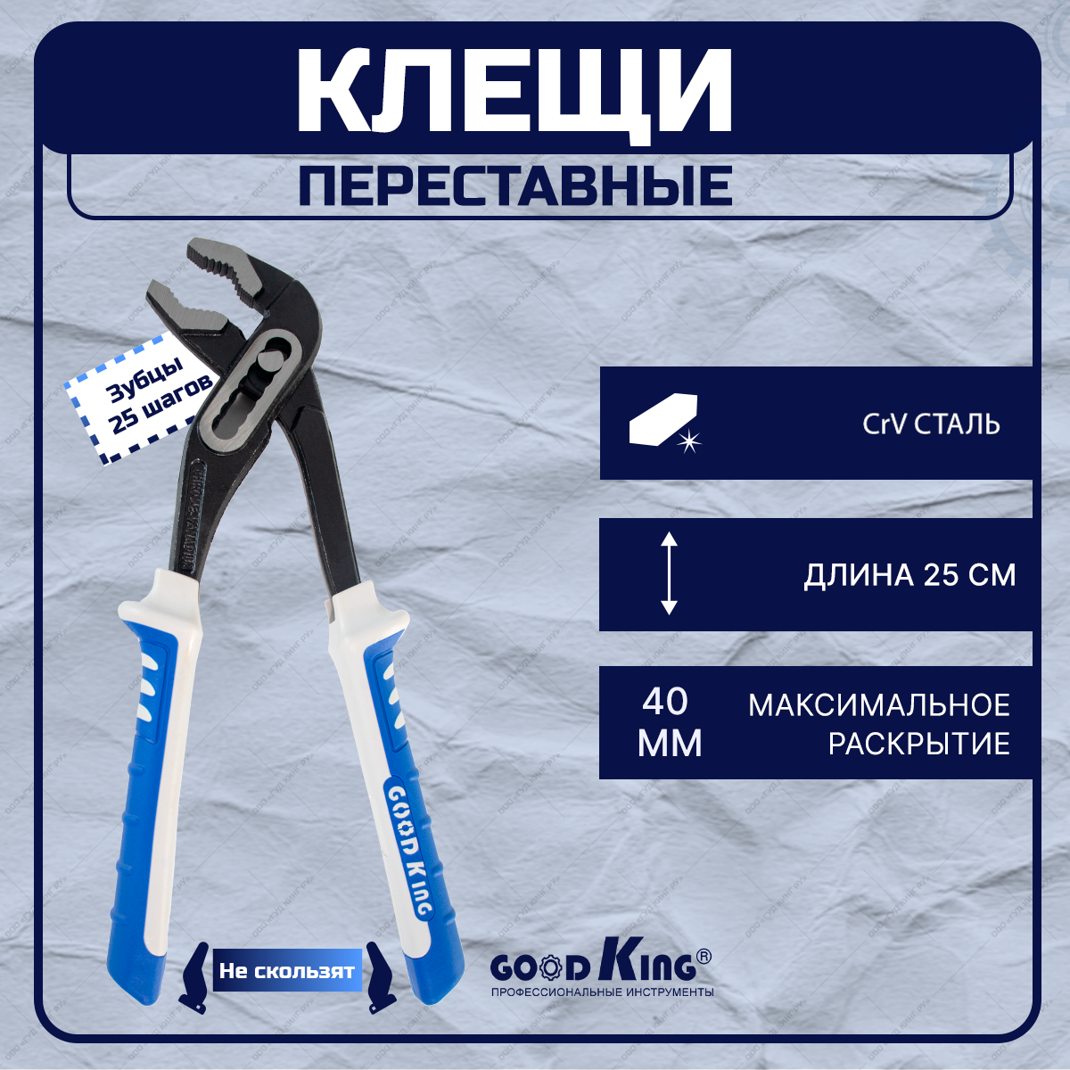 Купить Клещи переставные GOODKING KP-10250, 250 мм, с широким зевом, для дачи, для дома, для ремонта