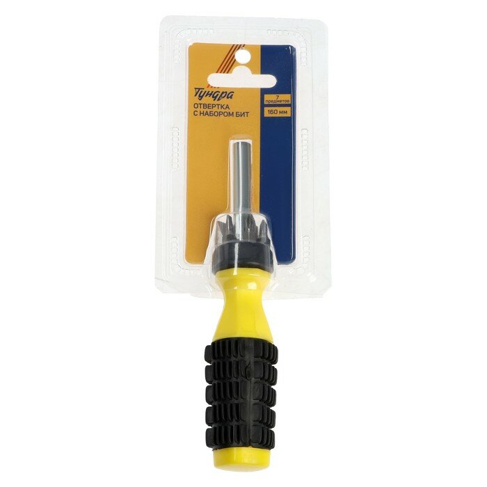 Отвертка с набором бит Тундра, 160 мм, 7 предметов в упаковке