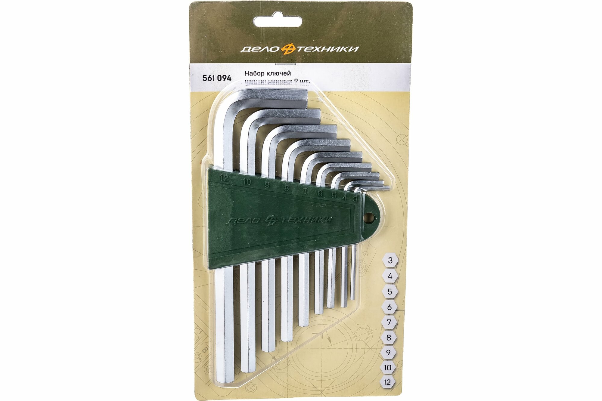 Набор ключей шестигранных 9 шт. (3,4,5,6,7,8,9,10,12мм) дело техники 561094