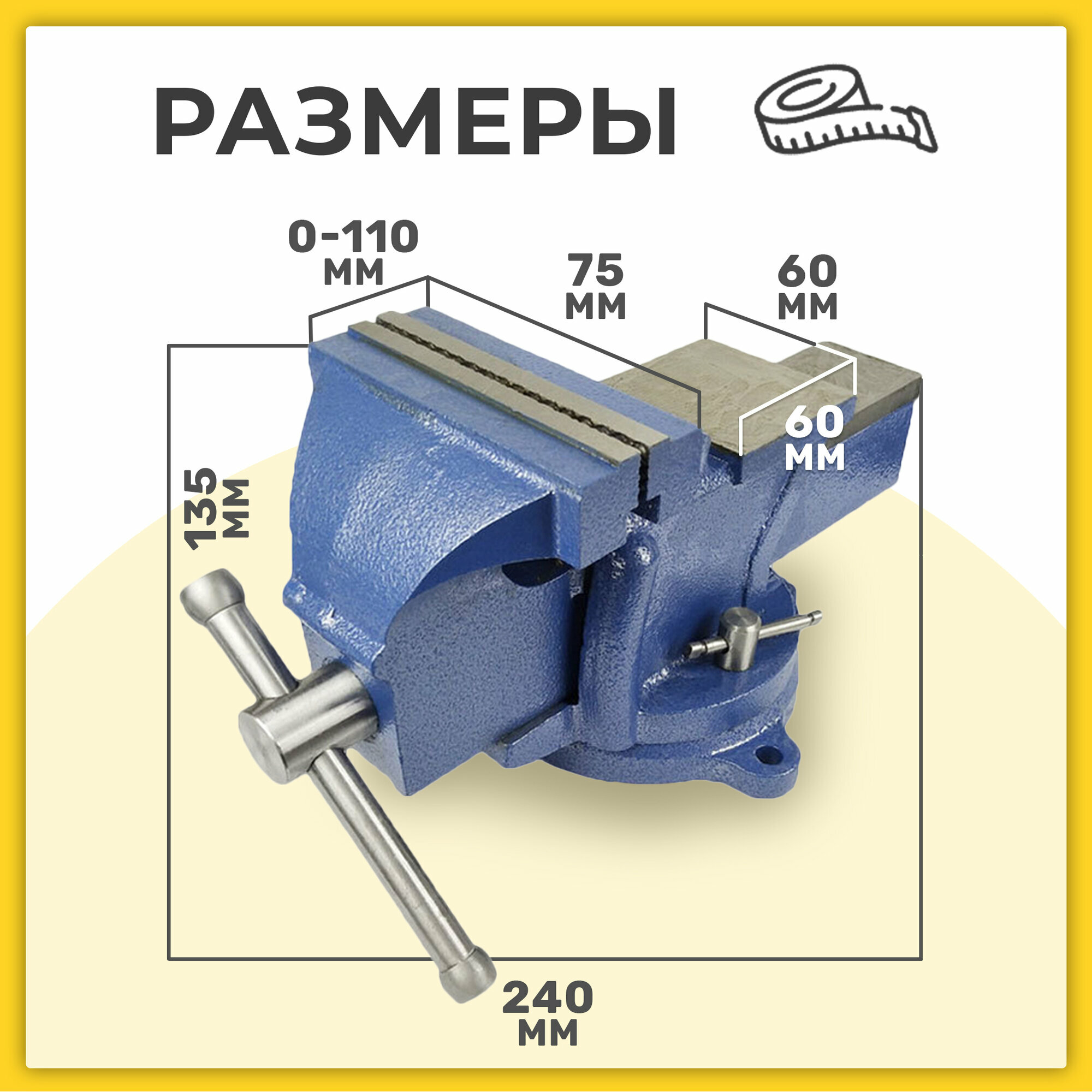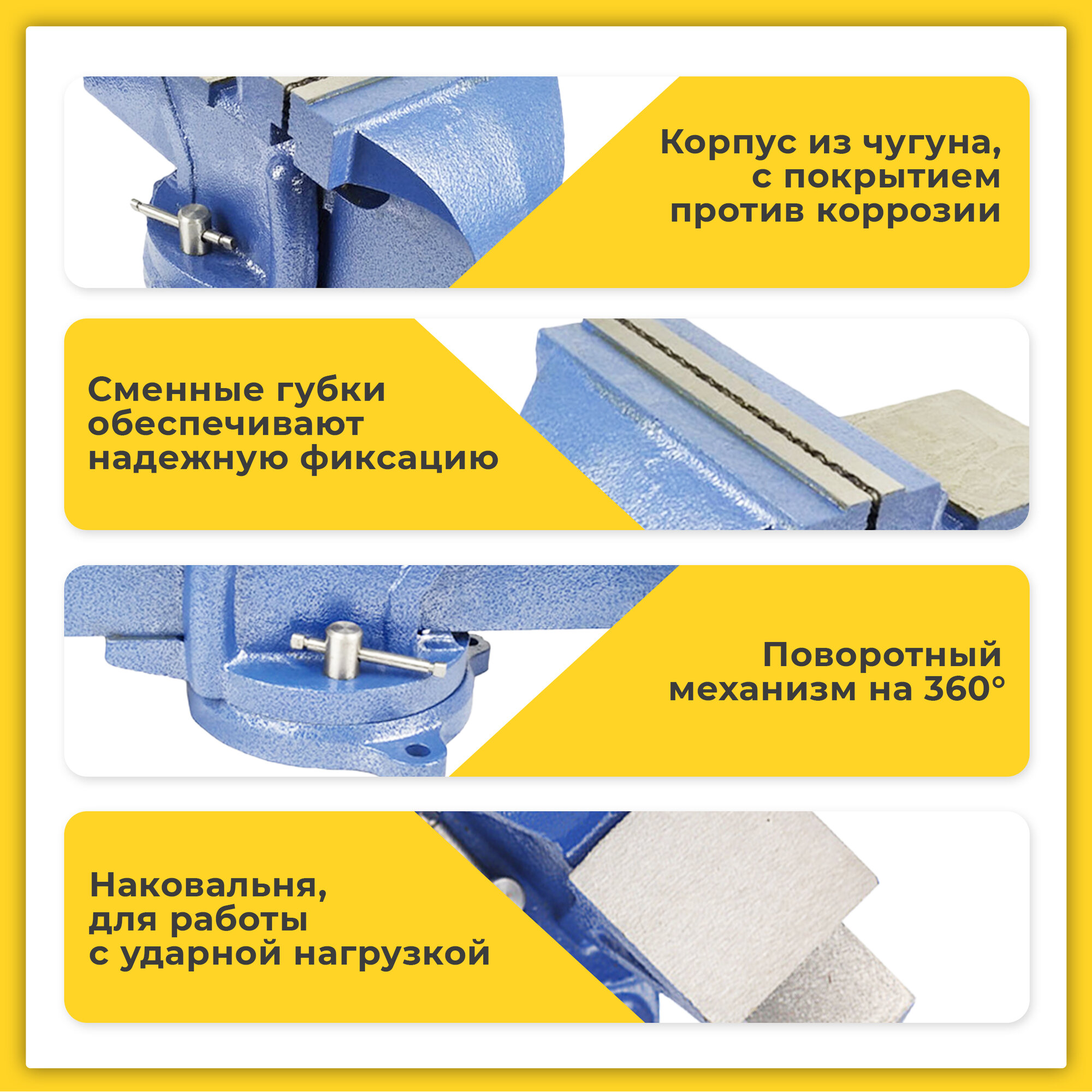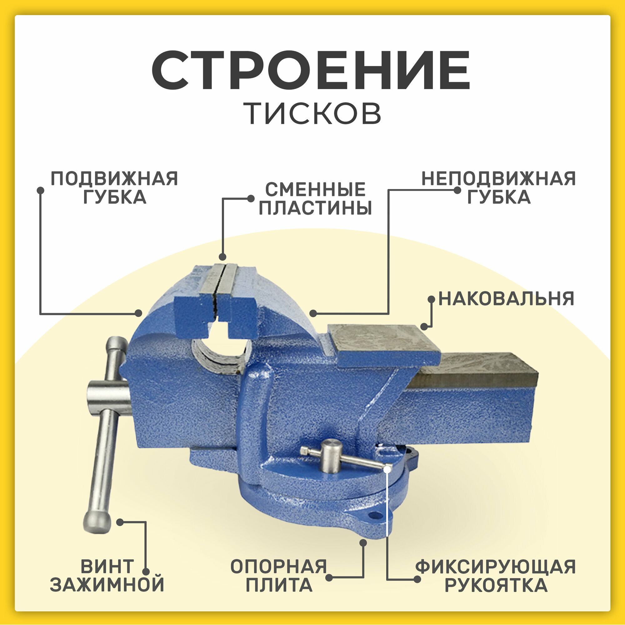 Тиски слесарные настольные 75 мм с наковальней, поворотные интересное: