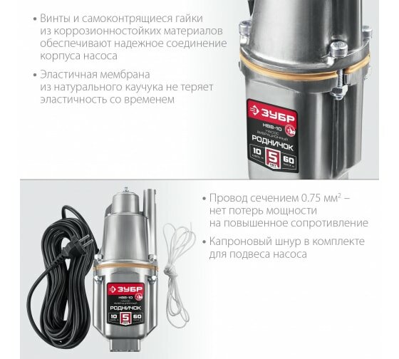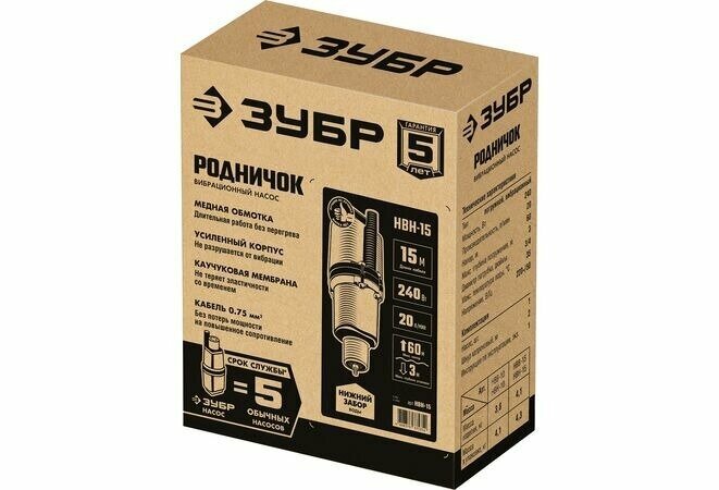СохранитьЗУБР 15 м провод, с нижним забором воды, насос вибрационный Родничок-Н НВН-15 Мастер интересное: