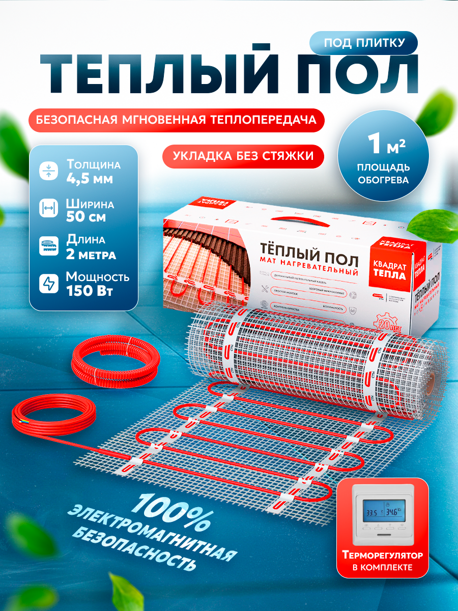 Теплый пол электрический Квадрат тепла под плитку 4,5 м2 с программируемым терморегулятором