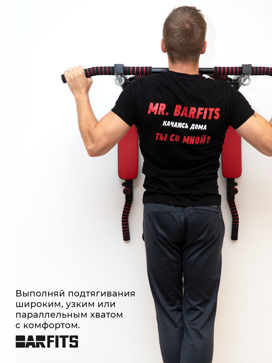 | Минусы: | Подушка под спину крепится на саморезы и буквально с любым усилием на нее разъезжается с турником, затем отваливается |