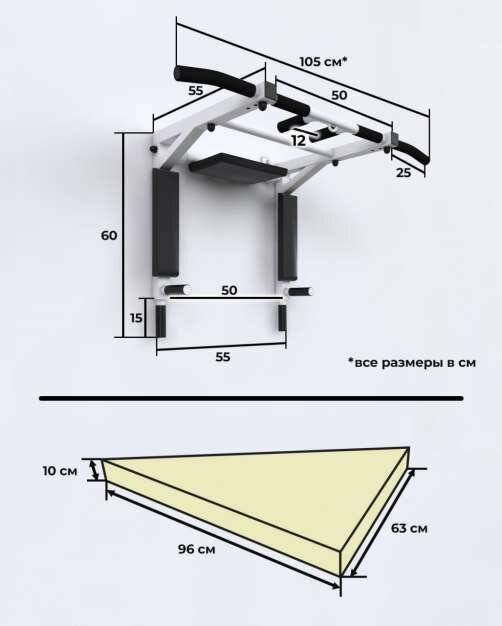 | Плюсы: | хороший турник за небольшие деньги, крепкие брусья, удобные ручки |