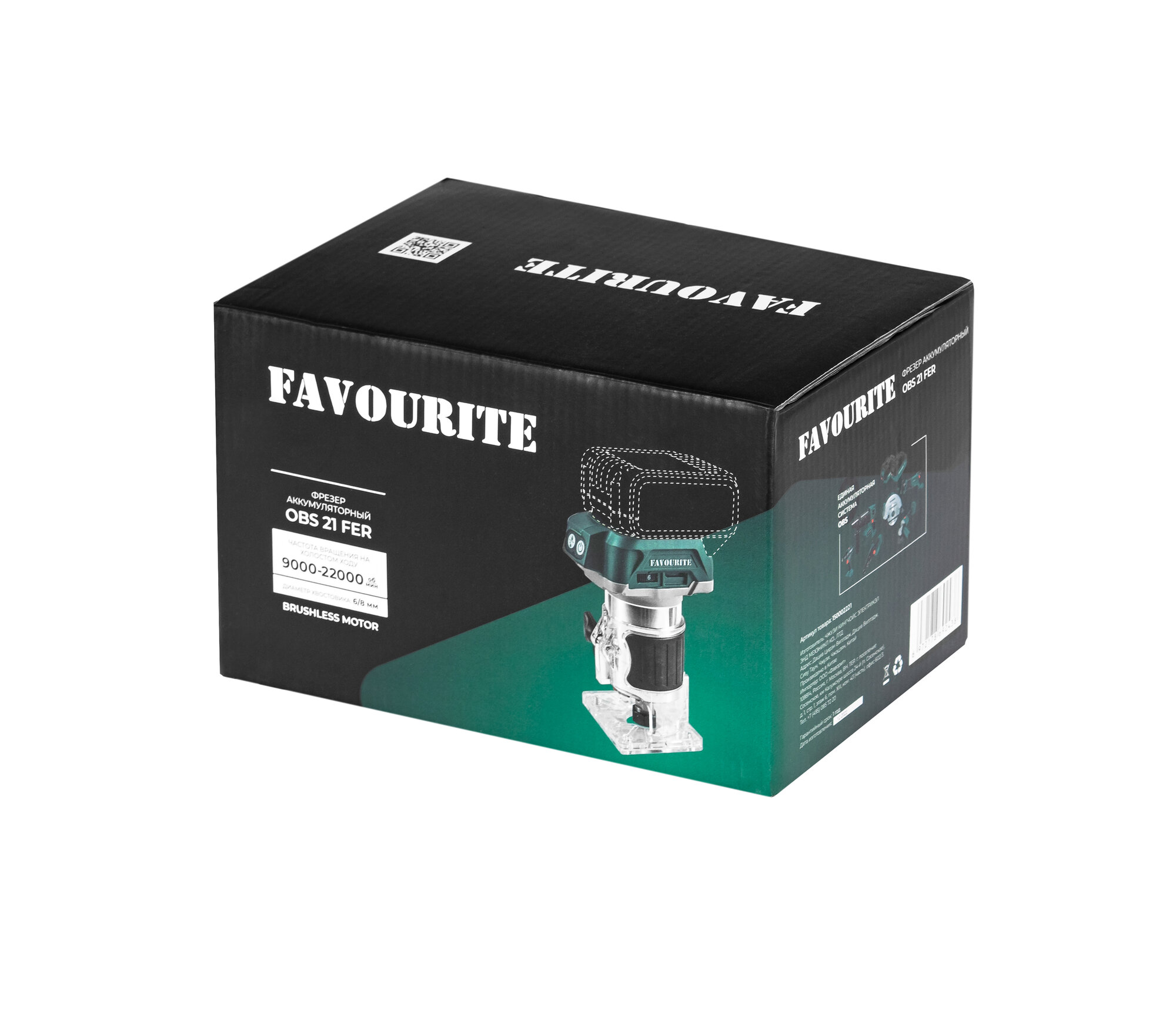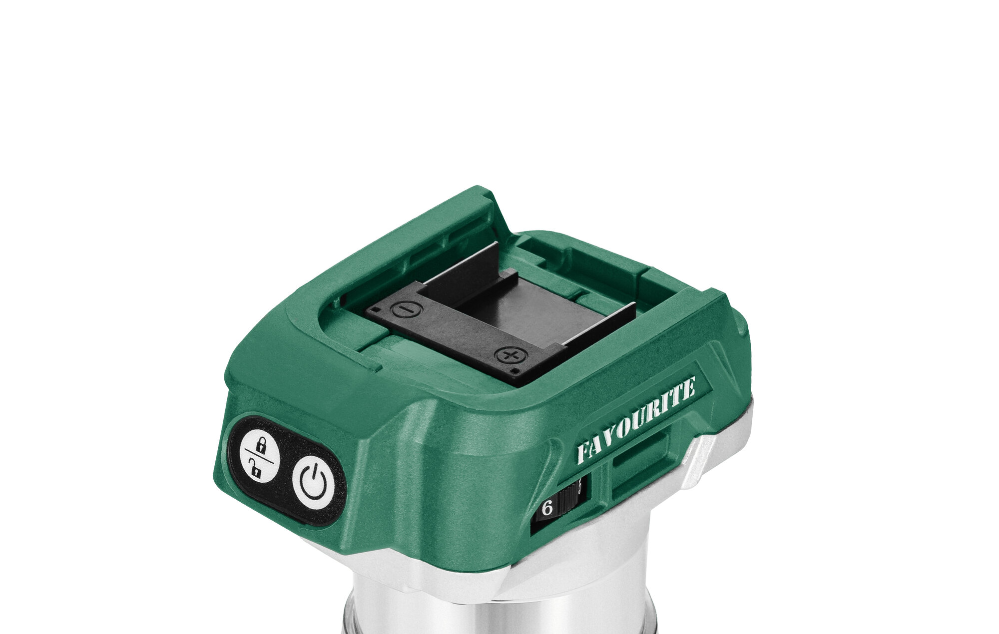 FAVOURITE Фрезер аккумуляторный Li-ion, 21 В, 2/4 Ач, 9000-22000 об/мин, 6/8 мм, бесщеточный двигатель One battery system OBS 21 FER