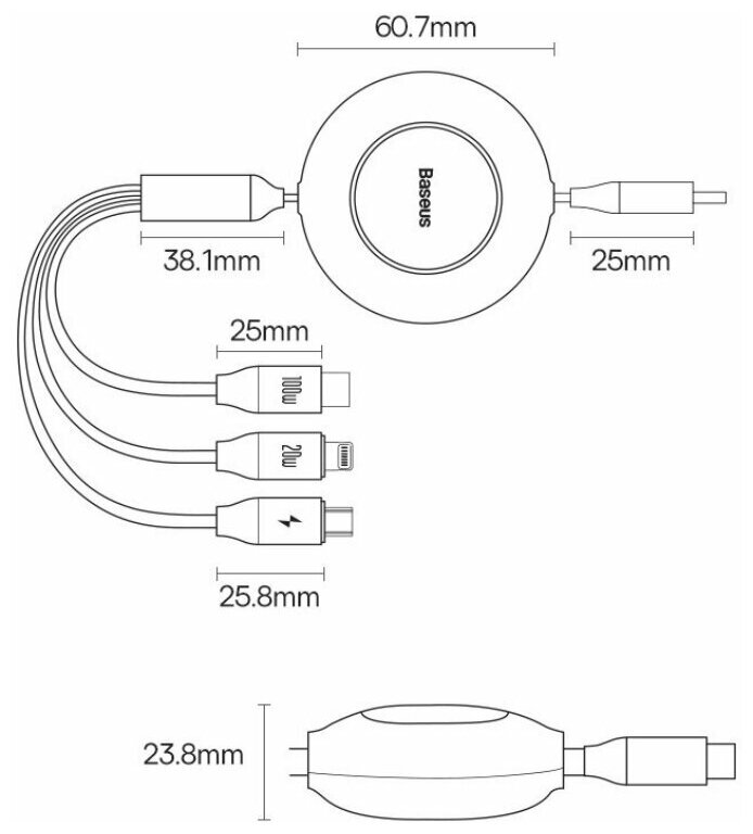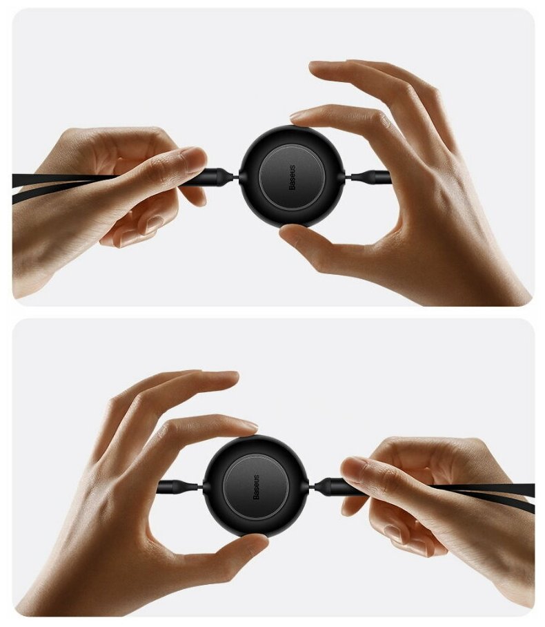Кабель Baseus Bright Mirror 2 Series Retractable 3-in-1 Fast Charging Data Cable Type-C to M+L+C 100W 1.1m Black (CAMJ010201)