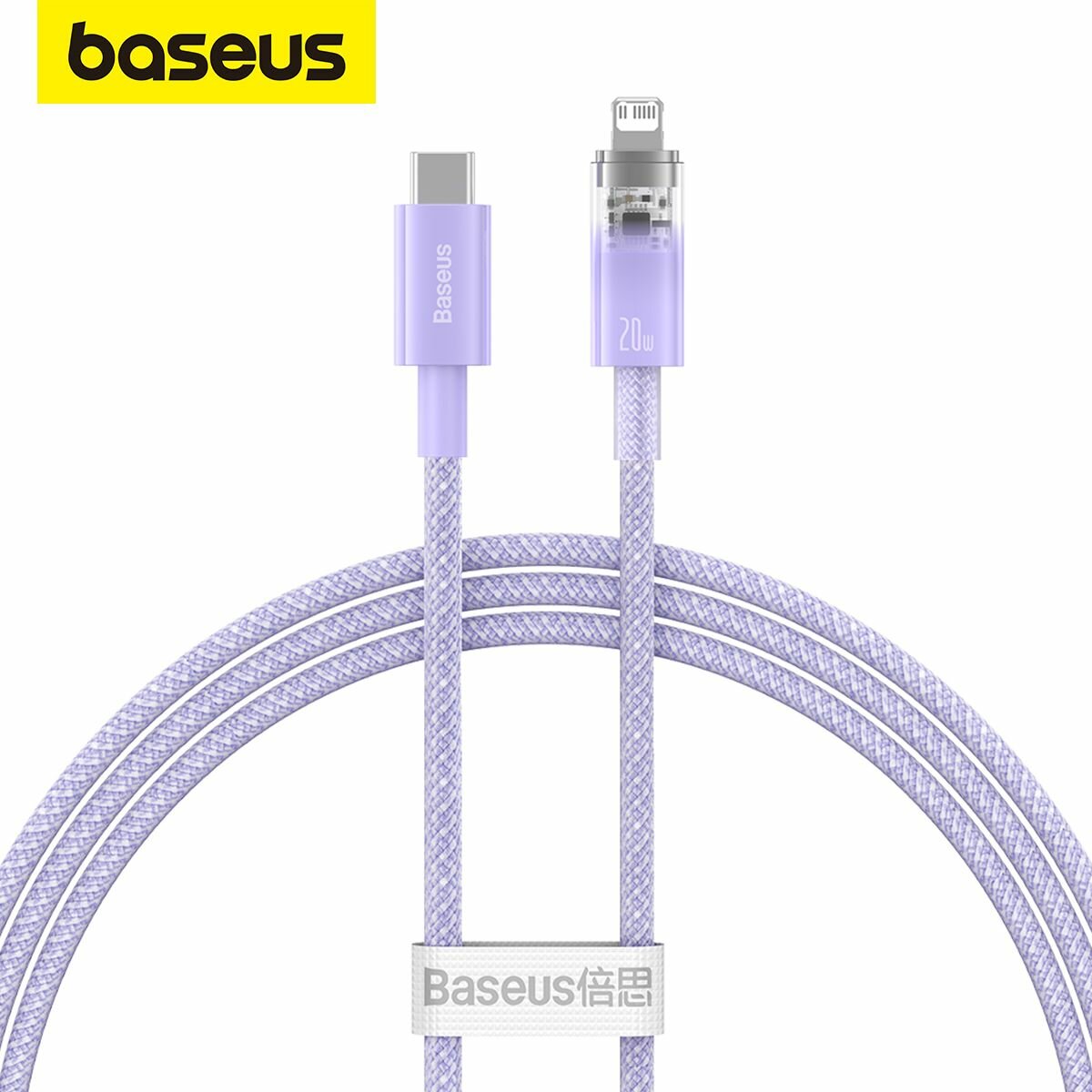 Купить Кабель с автоотключением и контролем температуры Baseus Explorer Series Fast Charging Cable, Type-C - Lightning , 20W, 1 м , Фиолетовый