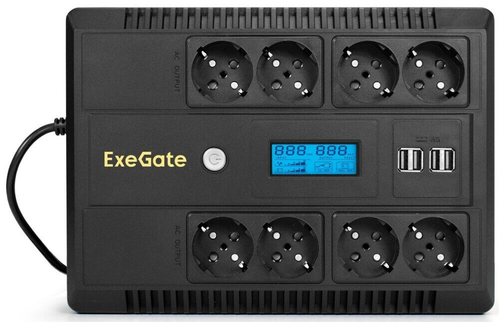 Источник бесперебойного питания EXEGATE LHB-800. LCD. AVR.8SH. CH. USB (EX293857RUS)