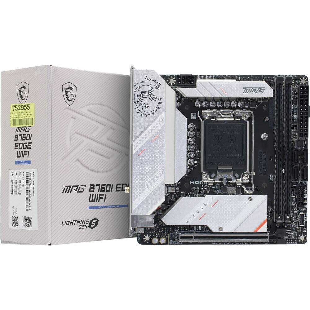 Материнская плата MSI MPG B760I EDGE WIFI, LGA 1700, Intel B760, 2xDDR5, 4xSATA, 2xM.2, 1xPCI-E 5.0 x16, 1xHDMI, 1xDP, 1x 2.5Gb LAN, 4xUSB-A 3.2 Gen 1, 1xUSB-A 3.2 Gen 2, 2xUSB-A 2.0, 1xUSB-C 3.2 Gen 2, 3x3.5 мм, 7.1, Mini-ITX