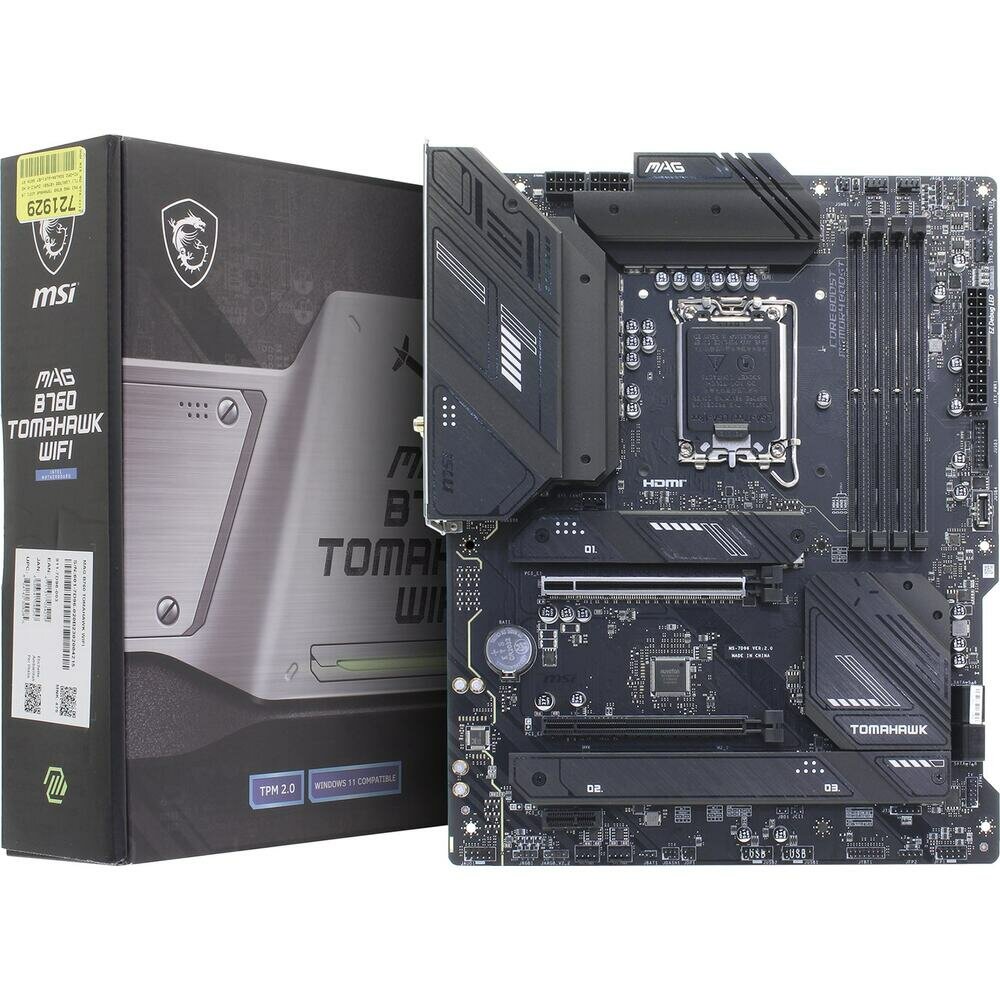 Материнская плата MSI MAG B760 TOMAHAWK WIFI Socket 1700 B760 4xDDR5 2xPCI-E 16x 1xPCI-E 1x 4xSATA III ATX Retail