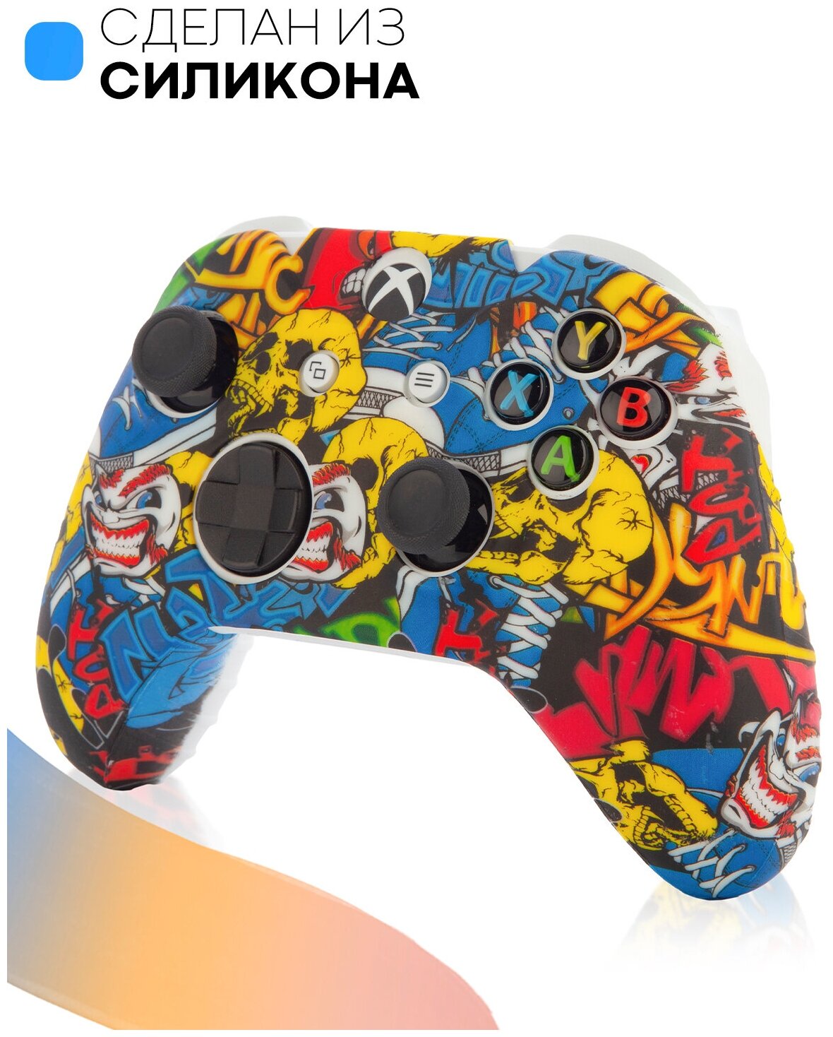 Защитный силиконовый чехол для геймпада Microsoft Xbox One, Xbox Series S, Series X (контроллер Икс Бокс 1, Серия С, Серия Икс, Экс) цветы, черепа