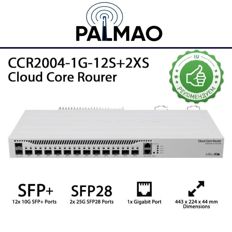 MikroTik CCR2004-1G-12S+2XS Маршрутизатор 12 x 10G SFP+ and 2 x 25G SFP28 ports. интересное: