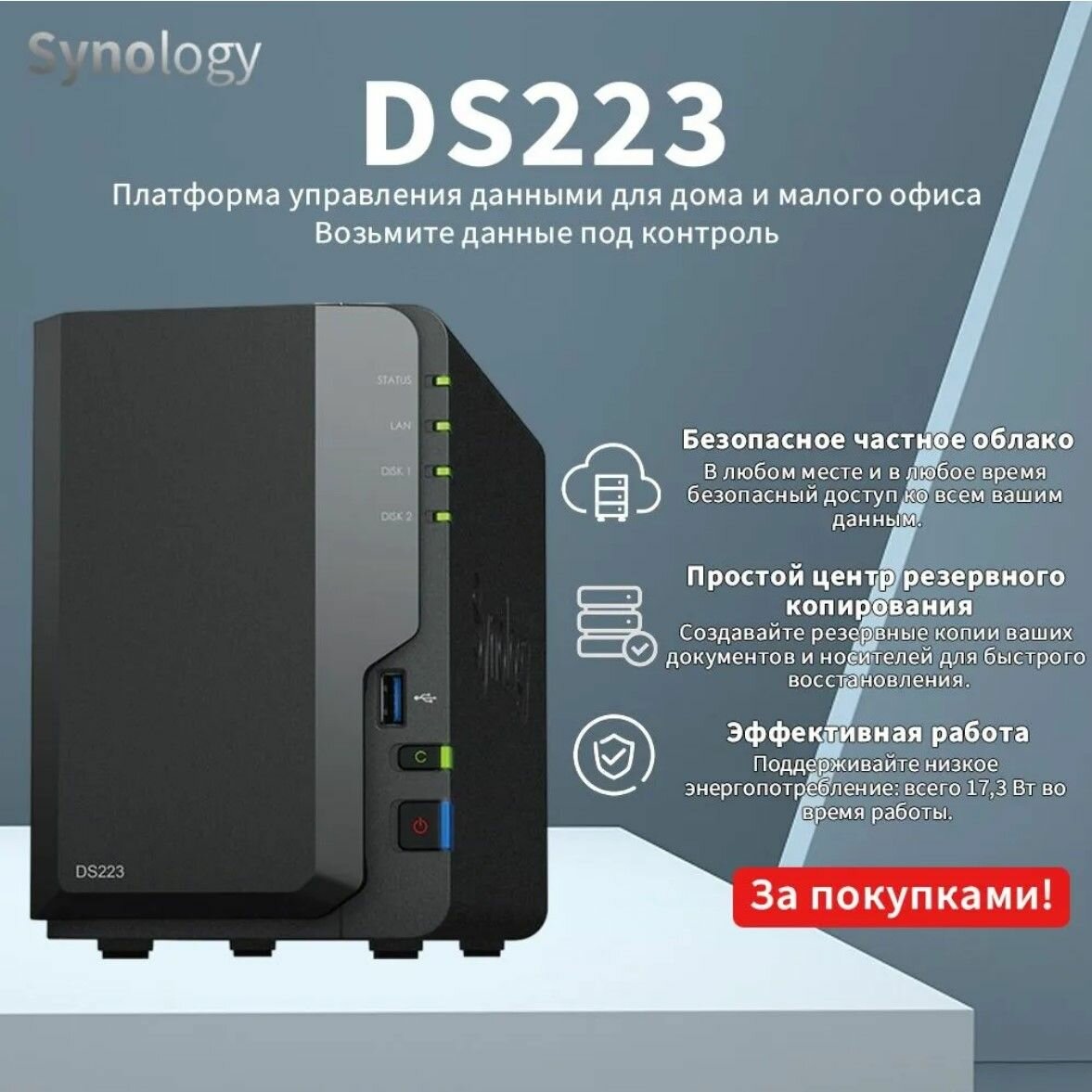 Купить Сетевой накопитель Synology DS223 без HDD .