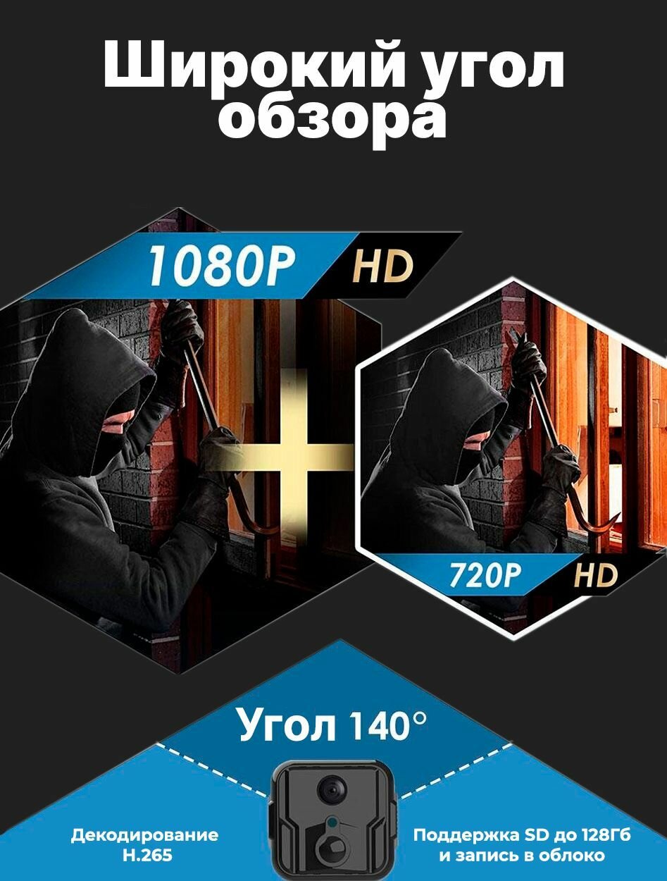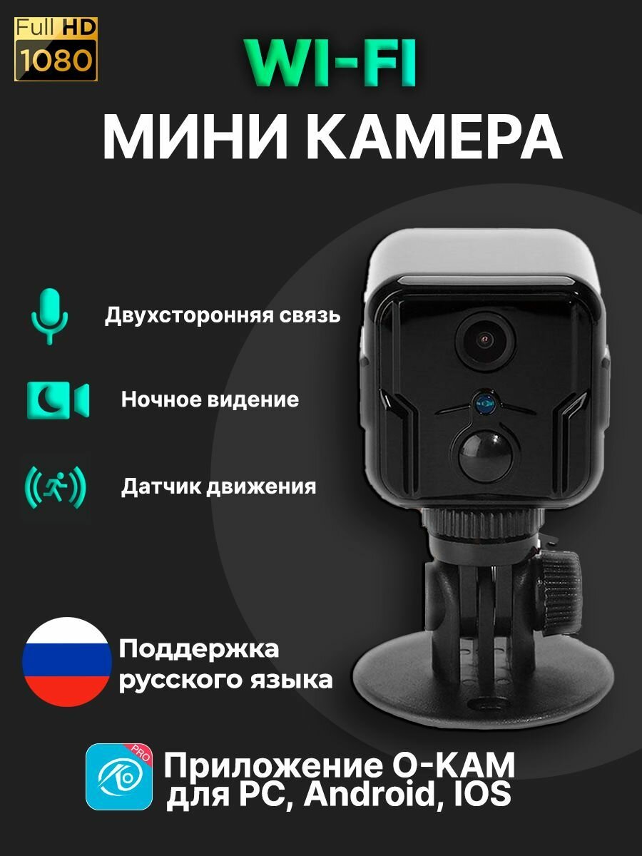 WiFi мини камера O-Kam S9+ (Plus) c датчиком движения, ночной подсветкой и встроенным аккумулятором 2400mAh интересное: