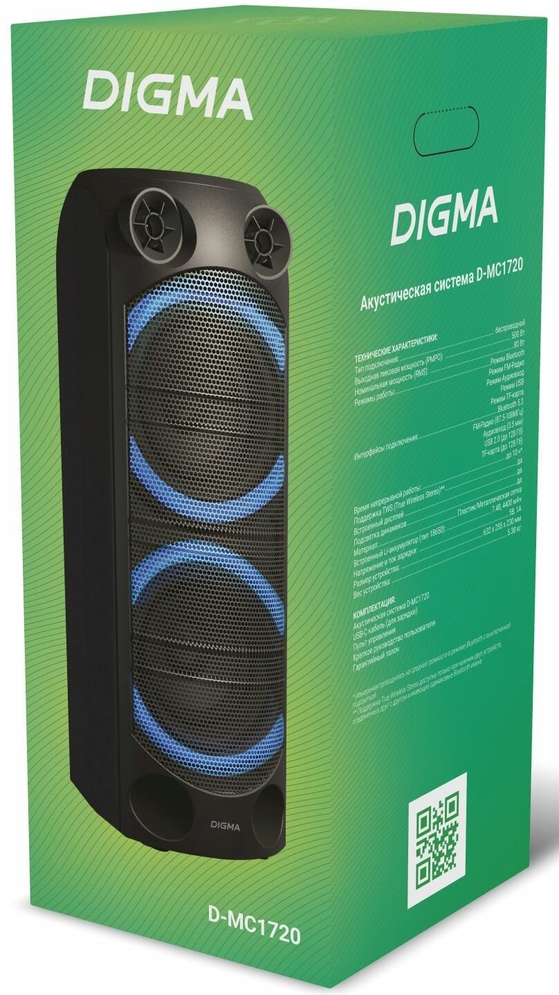 музыкальный центр, колонка Digma D-MC1720 интересное: