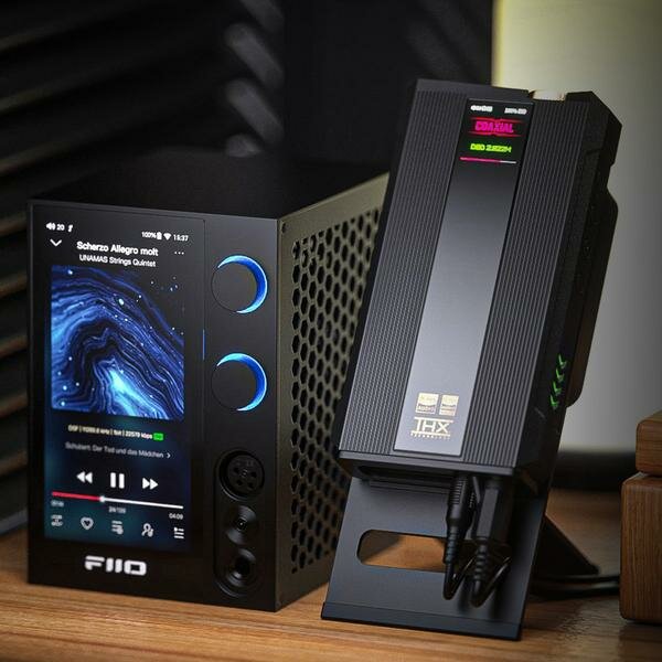 | Плюсы: | Звук, мощность усиления, богатая комплектация, нет наводок от телефона, дальность блютуза. Качество корпуса, чехла, подставки, заглушек и кабеля к айфону. Доп. аксессуары FiiO KB1 и FiiO PL50. Обновление через приложение с телефона. Закрыл для себя максимум в плане "портативного" аудиоцапа. |
