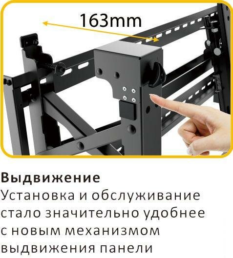 Кронштейн Digis DSM-P0380 выдвижной для панелей 43"-70", VESA макс. 600x400мм, до 70кг, микрорегулировки. Микрорегулировки выноса, высоты, горизонтали, наклона, поворота и уровня