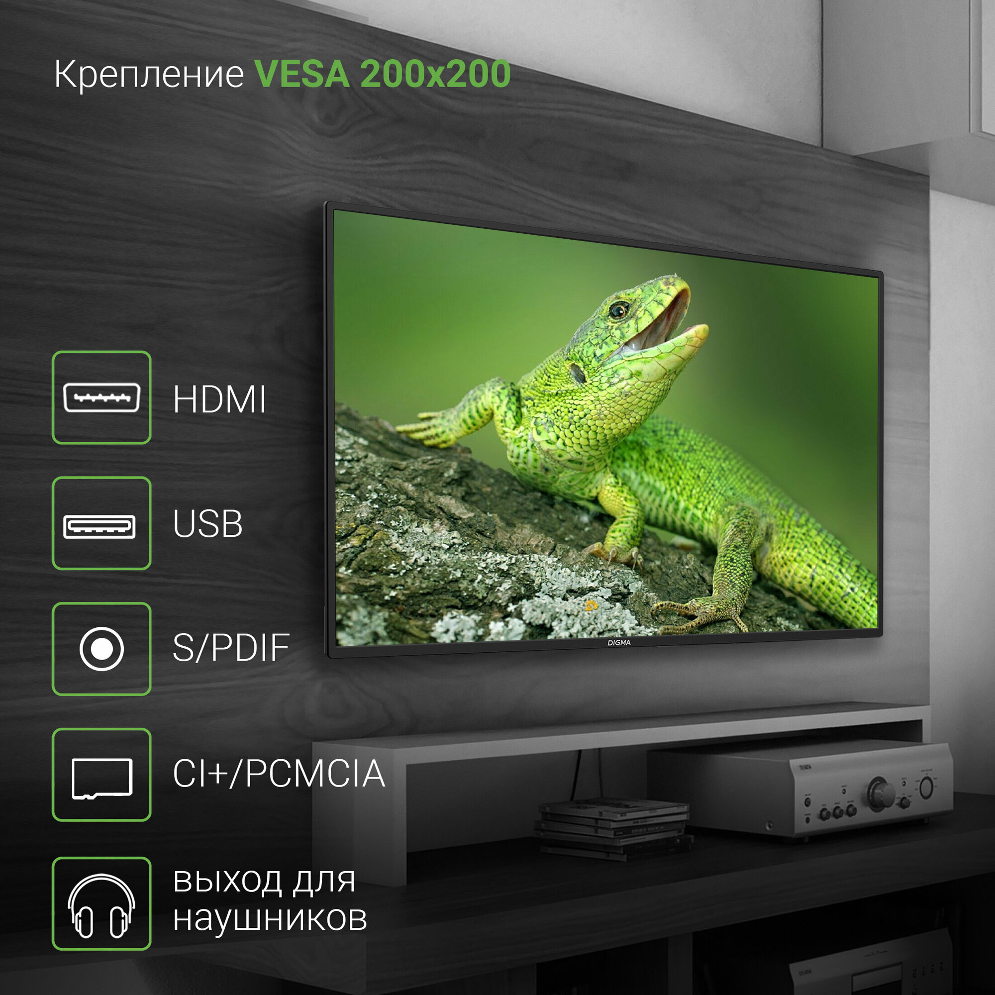 DIGMA Телевизор Digma DM-LED43MBB21, 43", 1920×1080, DVB-T/T2/C/S/S2, HDMI×3, USB×2