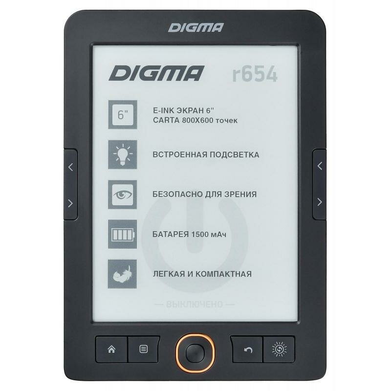 Купить 6"Электронная книга Digma R654 E-ink HD Pearl 1024x758 600MHz/4Gb/microSDHC/подсветка, графит
