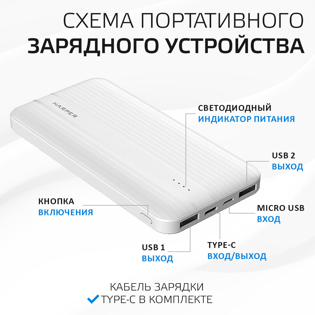 СохранитьВнешний аккумулятор HARPER PB-10006 белый интересное: