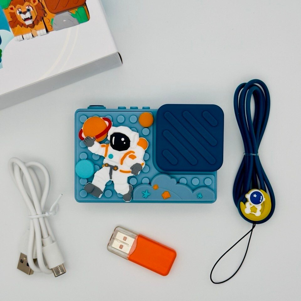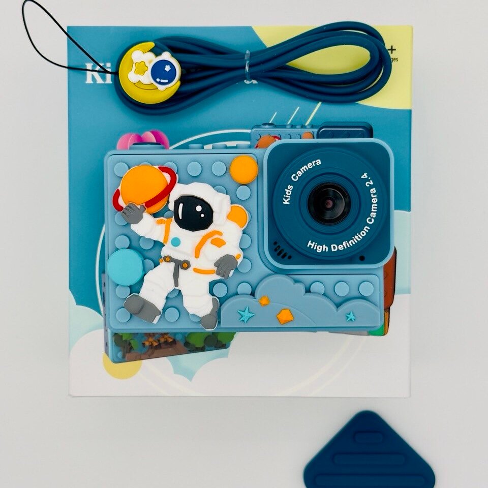 СохранитьДетский цифровой фотоаппарат с селфи камерой и головоломкой для девочки, мальчика, игрушечная фотокамера для детей ударопрочная 1080p Full-HD, Космонавт для ребенка интересное: