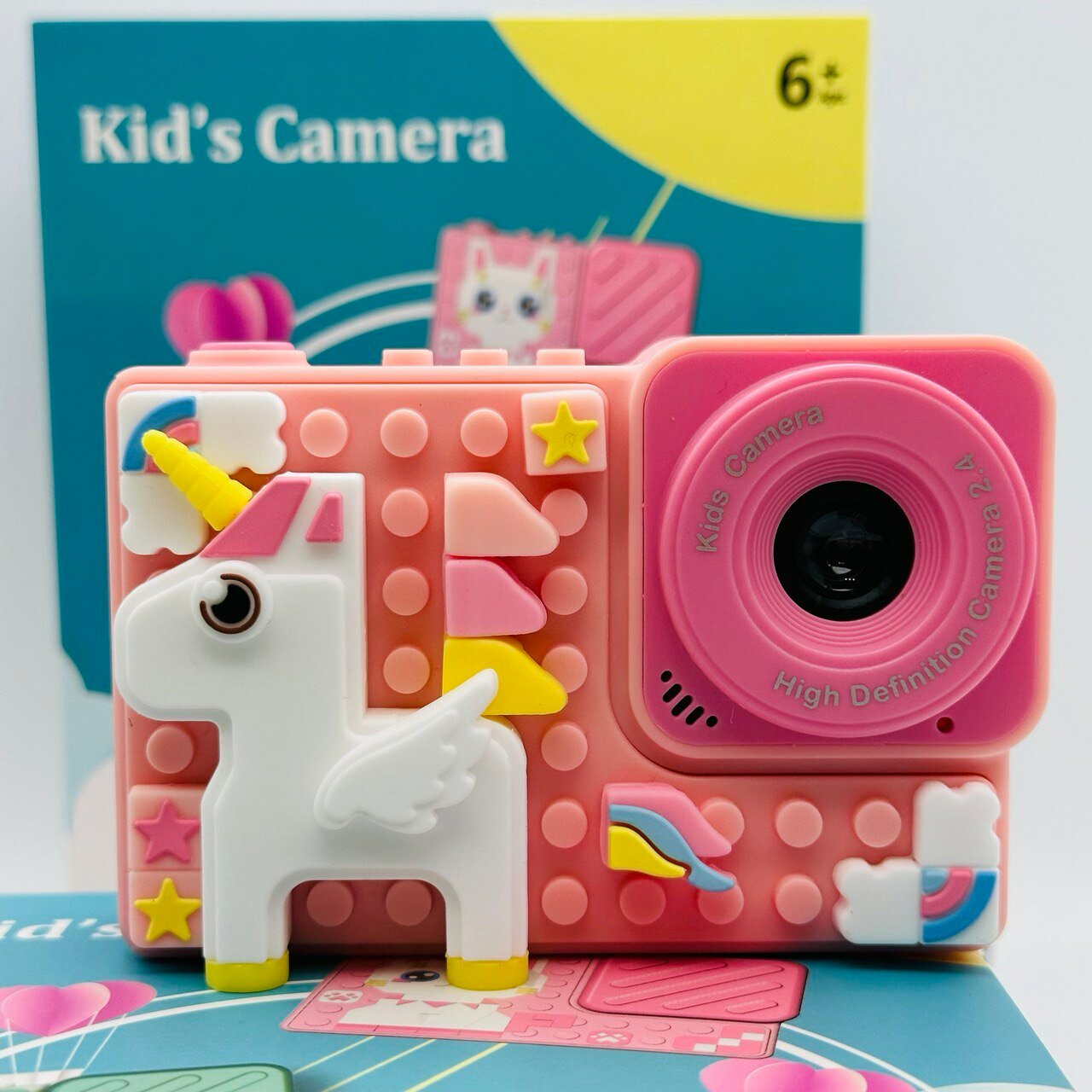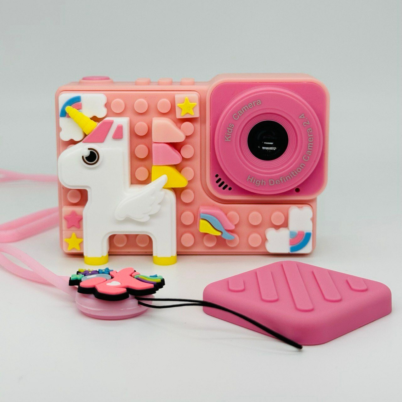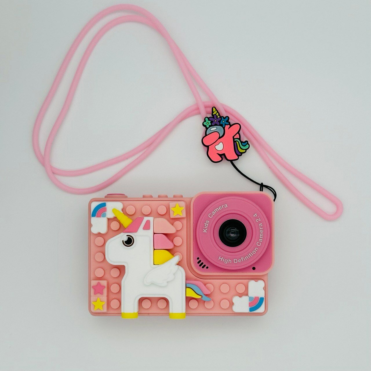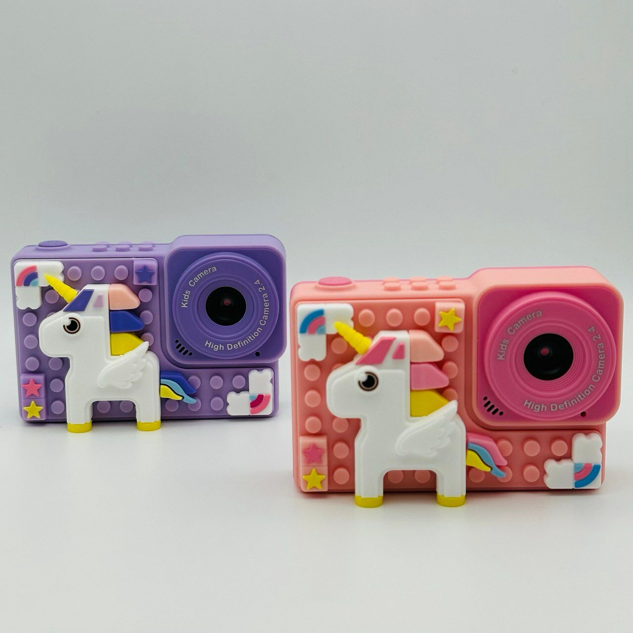 Ударопрочный детский фотоаппарат 1080p Full-HD высокого качества со встроенной памятью цифровая камера с 3 играми и селфи. Единорог розовый