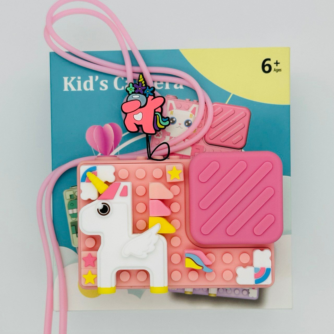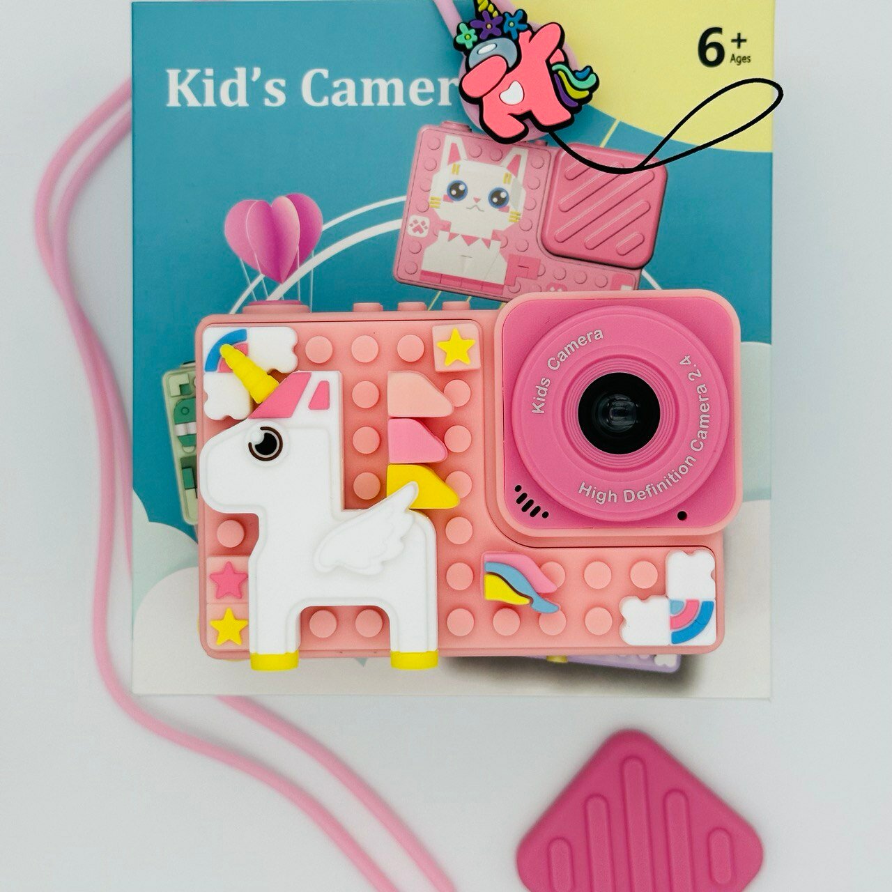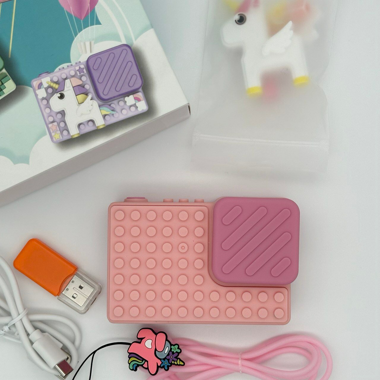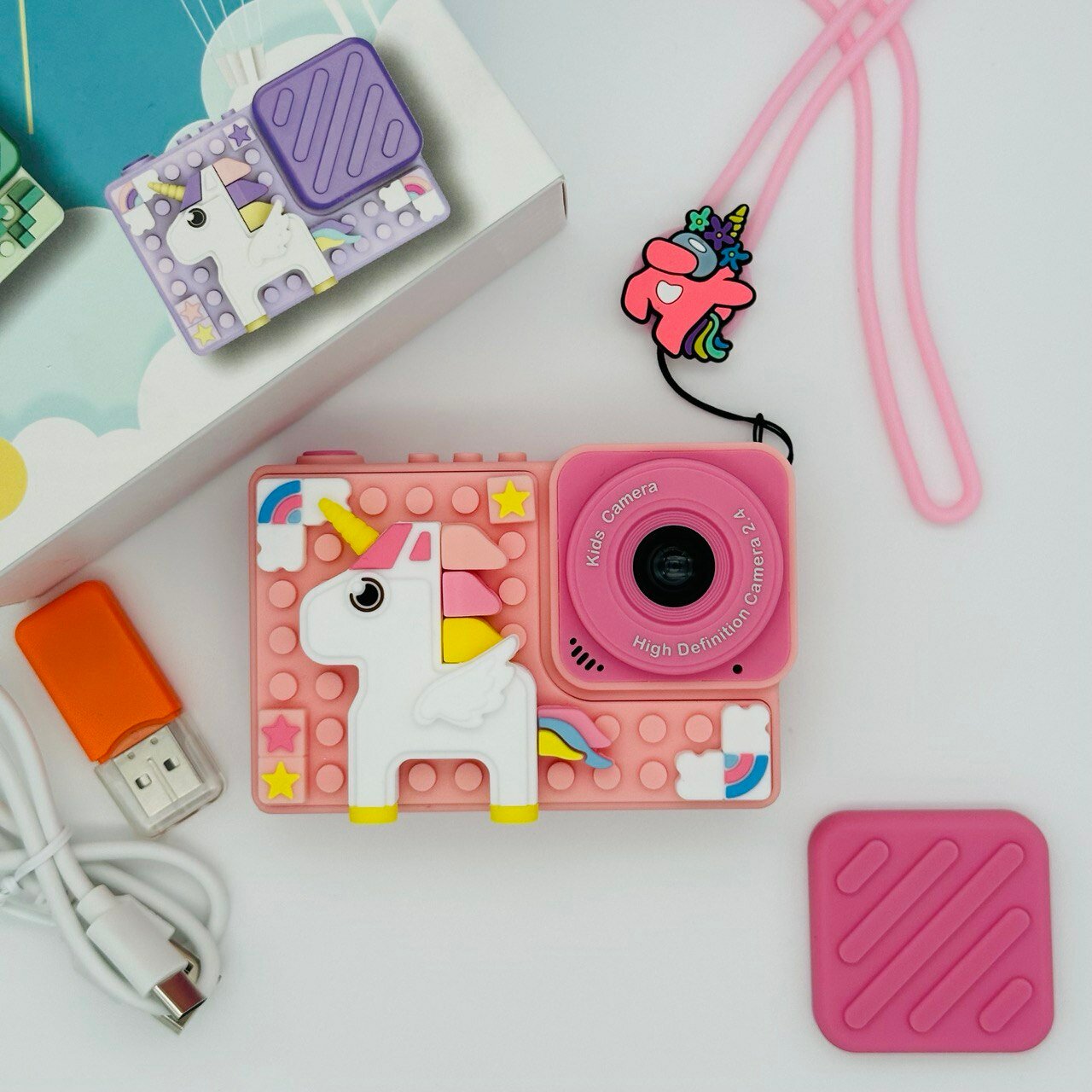 Ударопрочный детский фотоаппарат 1080p Full-HD высокого качества со встроенной памятью цифровая камера с 3 играми и селфи. Единорог розовый