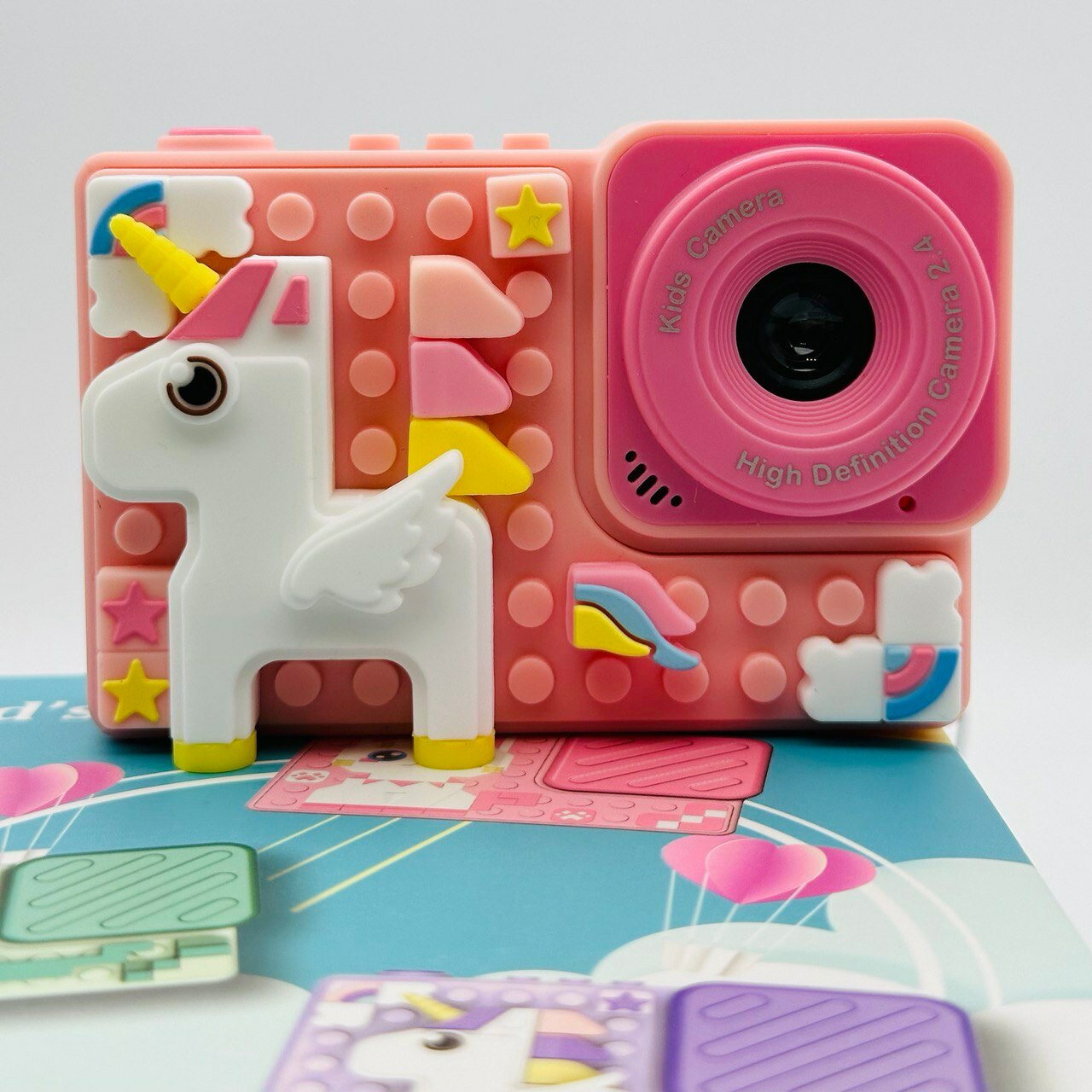 Купить Детский цифровой фотоаппарат с селфи камерой и головоломкой для девочки, мальчика, игрушечная фотокамера для детей ударопрочная 1080p Full-HD, Единорог для ребенка