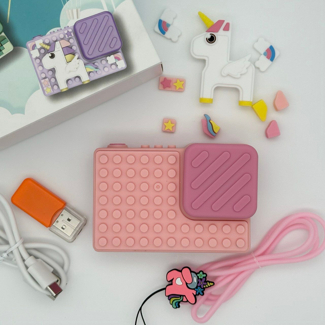 СохранитьДетский цифровой фотоаппарат с селфи камерой и головоломкой для девочки, мальчика, игрушечная фотокамера для детей ударопрочная 1080p Full-HD, Единорог для ребенка интересное: