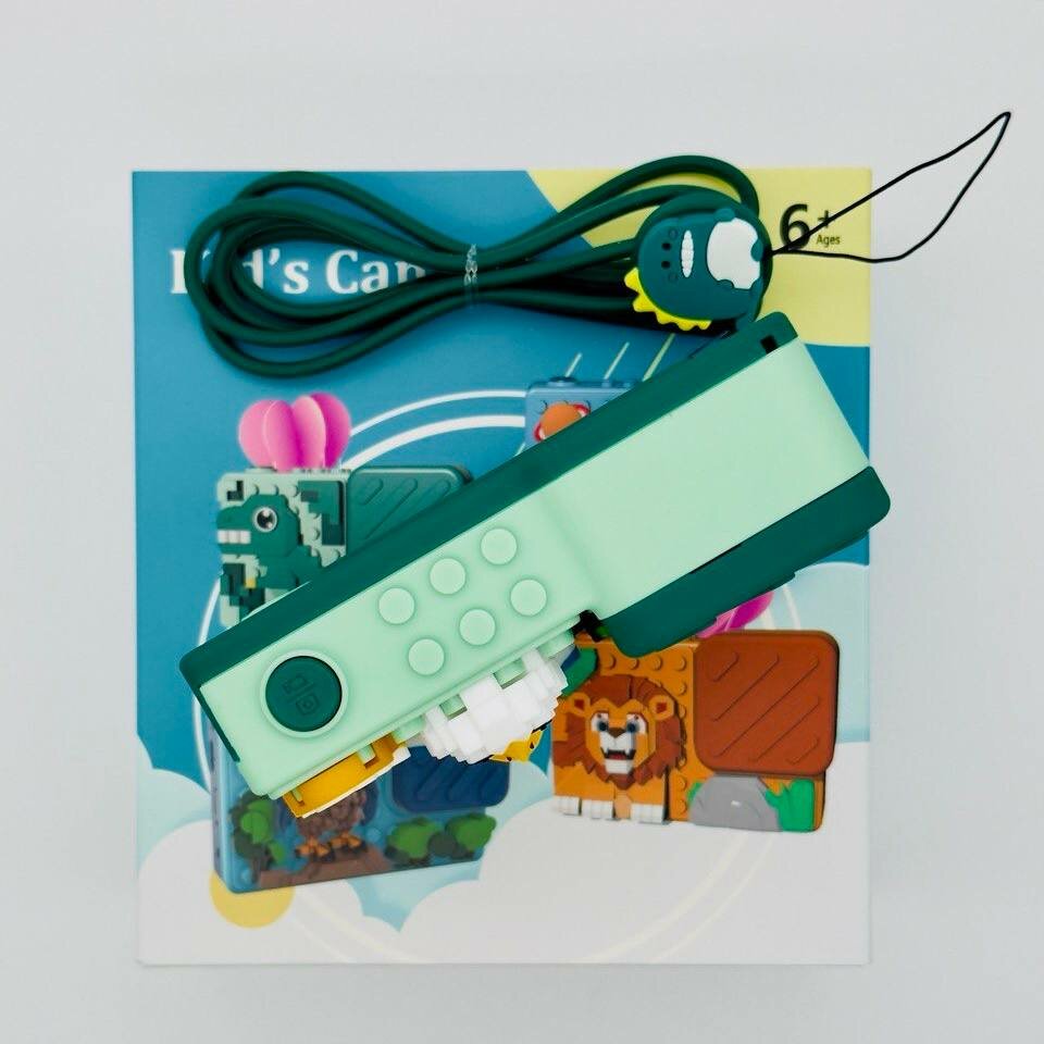 Детский цифровой фотоаппарат Динозавр ударопрочный 48Мп камера 1080p Full-HD высокого качества со встроенной памятью, зеленый, фотоаппарат для детей с играми и селфи, подарок для мальчиков