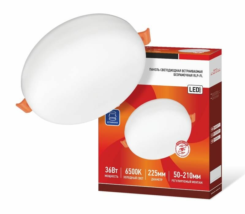 Панель светодиодная встр. безрамочная RLP-FL 36Вт 230В 6500К 2520Лм 225мм с рег. монтаж. 50-210мм интересное: