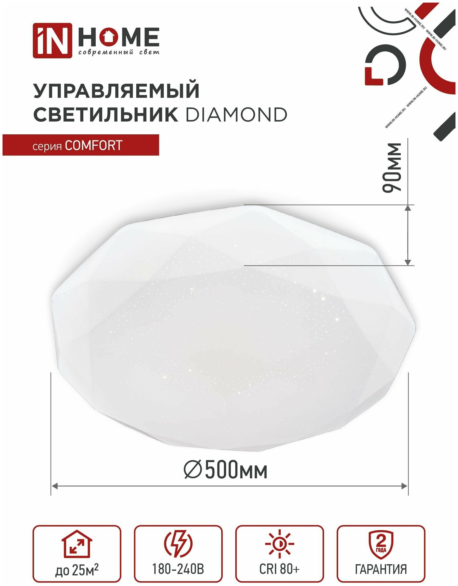 Настенно-потолочный светильник IN Home COMFORT DIAMOND 75Вт 230В 3000-6500К 6000лм 480х80мм с пультом ДУ 4690612034799
