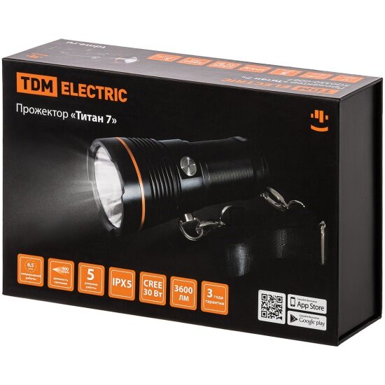 Фонарь TDM прожектор Титан 7, 30 Вт CREE 3600 лм, 4х18650, IPX5, Type-C, SQ0350-0067