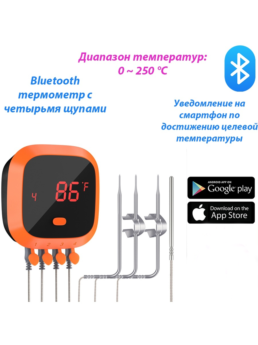 Кулинарный термометр INKBIRD IBT-4XC, 4 щупа, Bluetooth интересное: