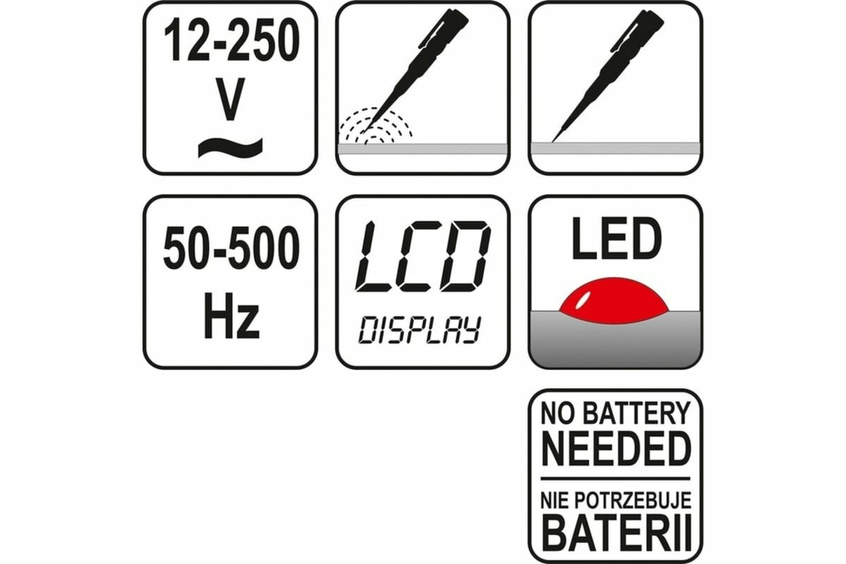 YATO YT-2862 Тестер переменного напряжения отвертка, цифровой, с дисплеем, с индикатором, 12-250 V, 50-500 Hz