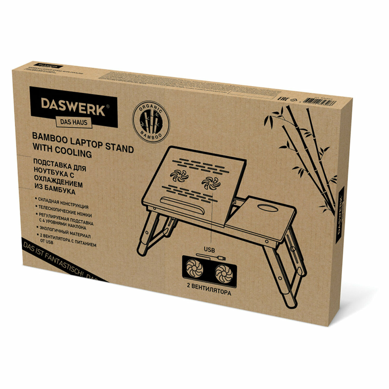 Столик складной для ноутбука, компьютера в кровать для завтрака деревянный (50х30х25см) с охлаждением, бамбук, Daswerk, 532583 интересное: