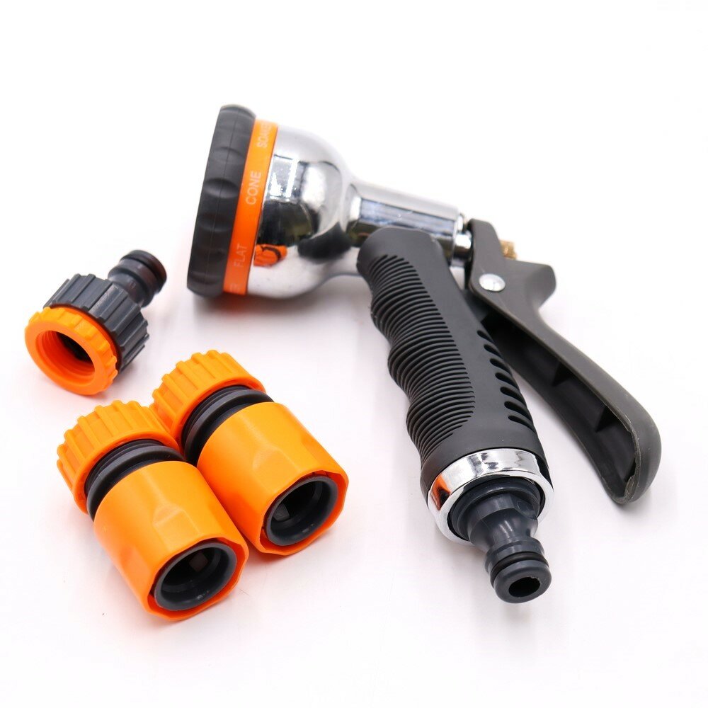 Набор для полива пистолет разбрызгиватель (металл) с комплектом соединителей, 8 режимов Belamos (Беламос) YM7504 / насадка на шланг для полива