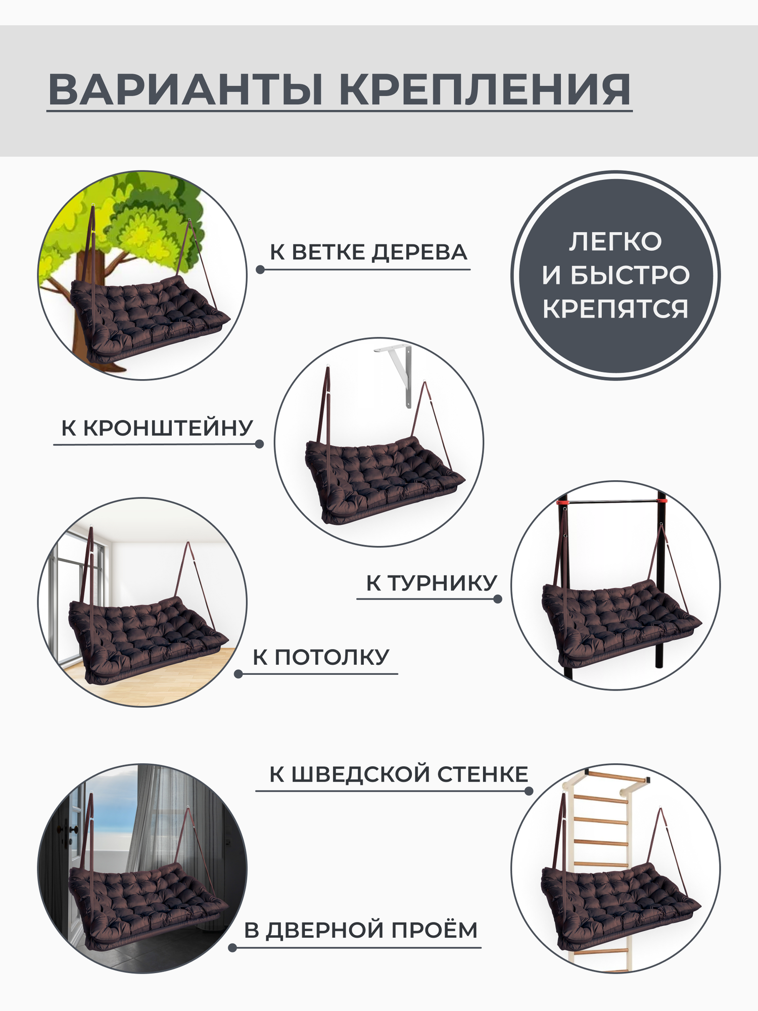 Купить Подвесные качели, качели садовые, диван 150*100, качели для дачи, уличные качели, качель коричневая