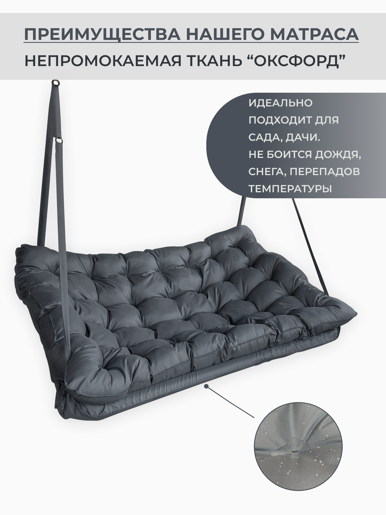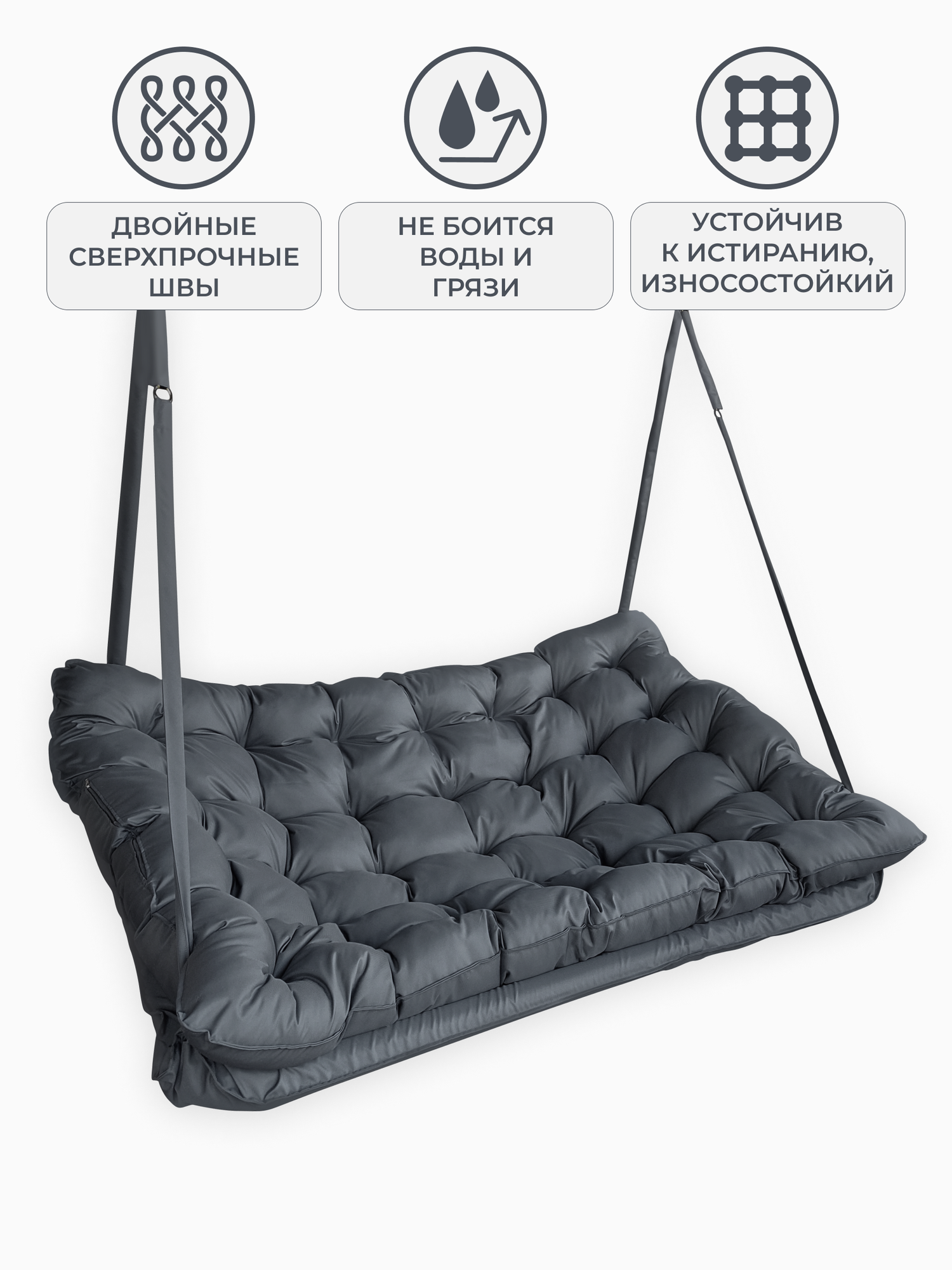 Купить Подвесные качели, качели садовые, диван 150*100, качели для дачи, уличные качели, качель тёмно-серая