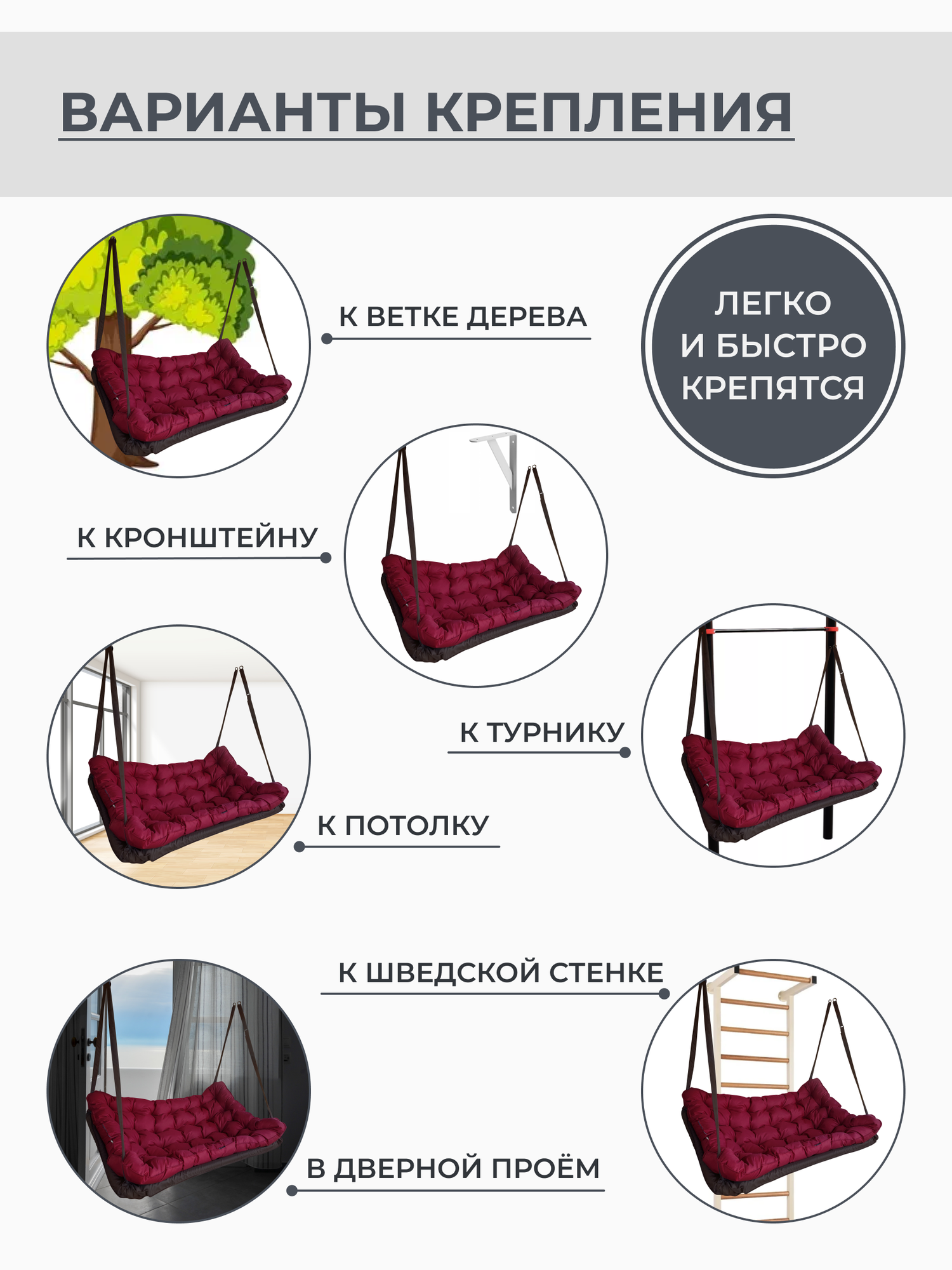 СохранитьПодвесные качели, качели садовые, диван 150*100, качели для дачи, уличные качели, качель тёмно-коричневая с бордовой подушкой интересное: