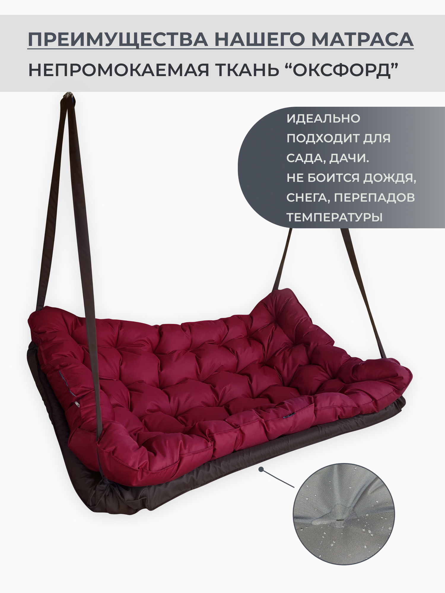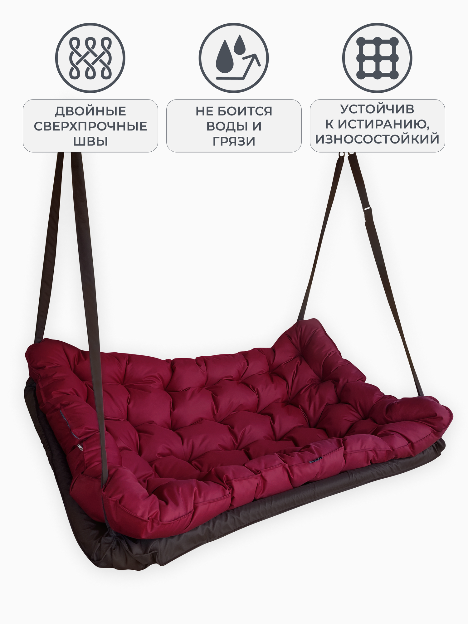 Купить Подвесные качели, качели садовые, диван 150*100, качели для дачи, уличные качели, качель тёмно-коричневая с бордовой подушкой
