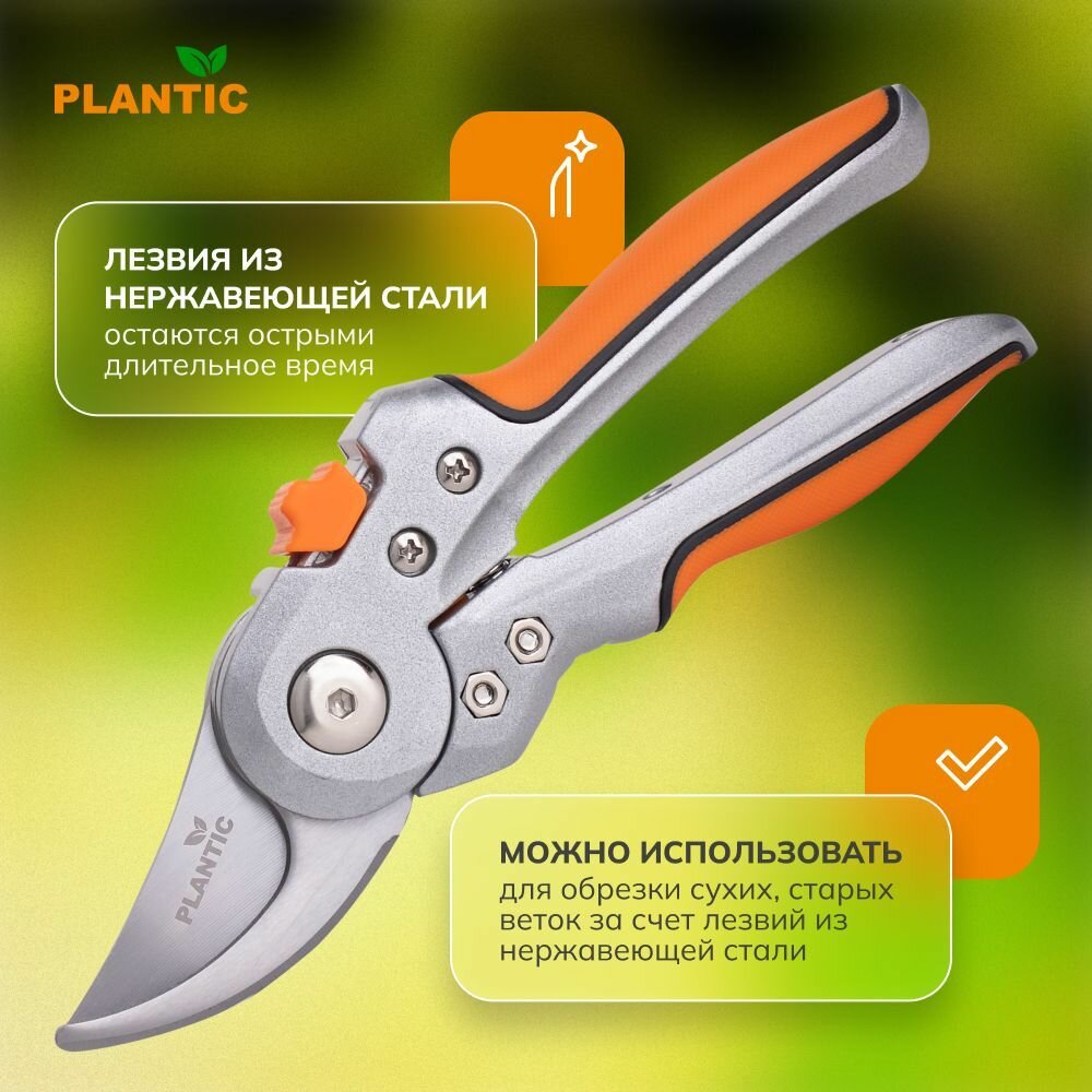 Секатор плоскостной Plantic P202 25202-01, 21 см., лезвия из нержавеющей стали, ручка из алюминиевого сплава