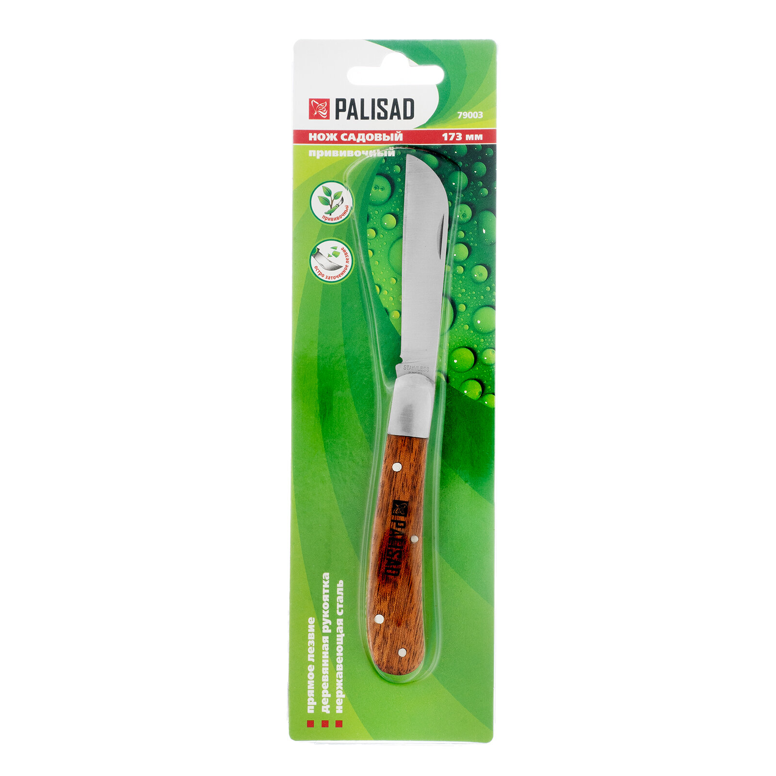 Нож садовый, 173 мм, складной, прямое лезвие, деревянная рукоятка Palisad