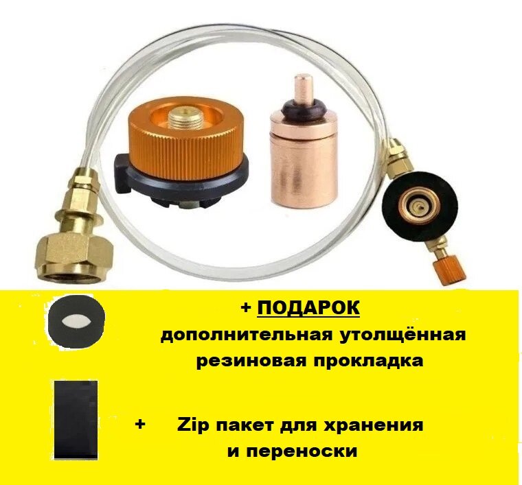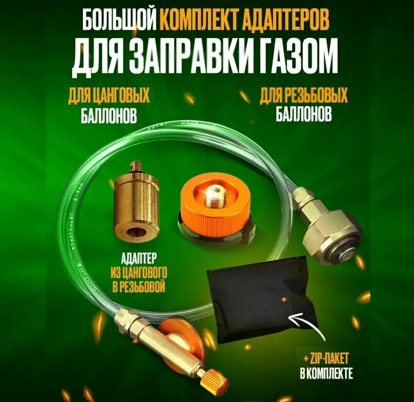 Адаптер с полным набором переходников для заправки резьбовых и туристических газовых баллонов в zip-пакете интересное: