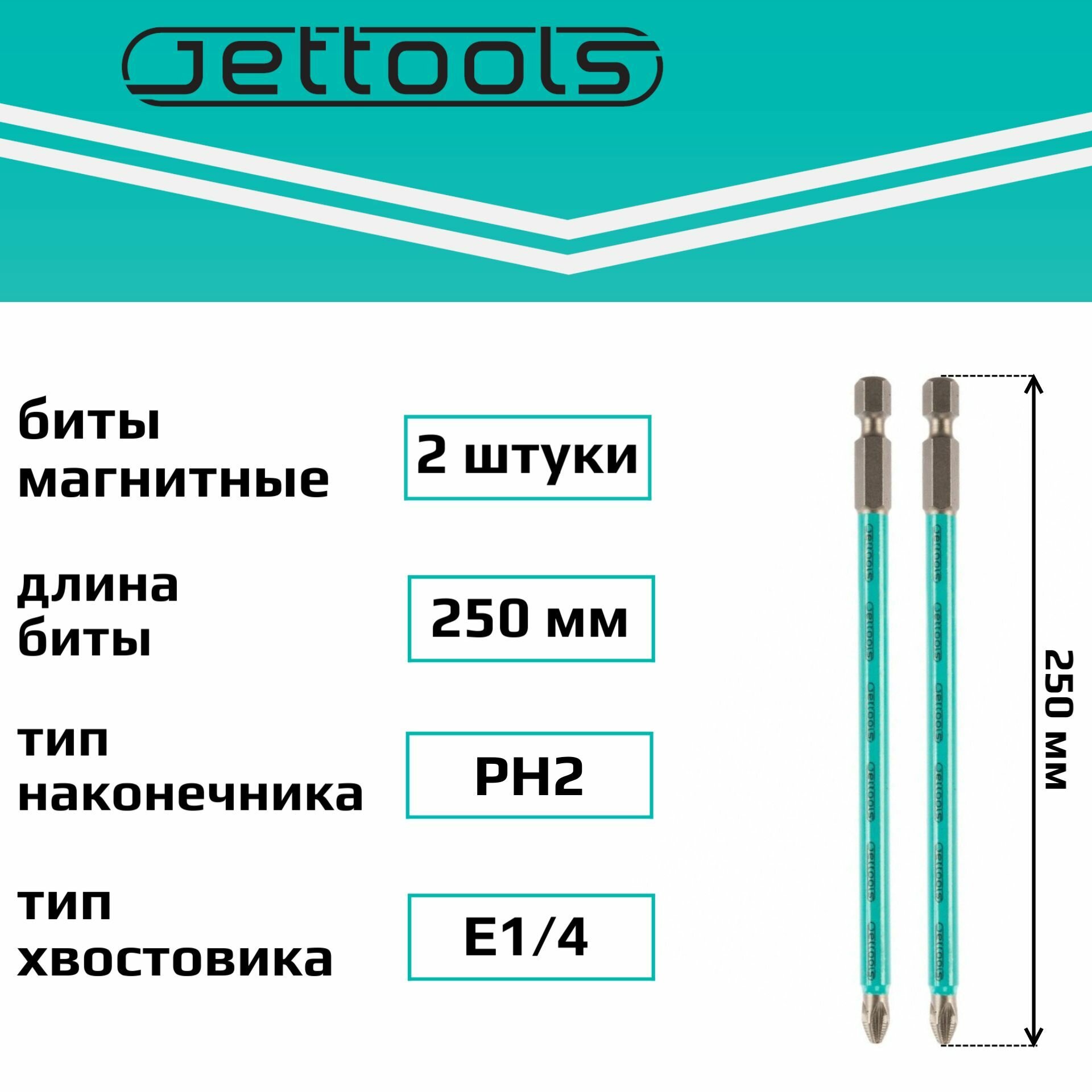 Биты PH2 250 мм Jettools магнитные для шуруповерта для больших нагрузок, 2 штуки