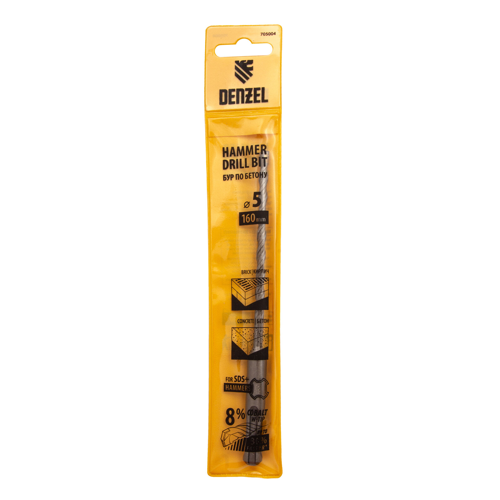 Бур по бетону, двойная спираль, Cobalt W-tip, 5x160 мм, SDS PLUS, DENZEL 705004