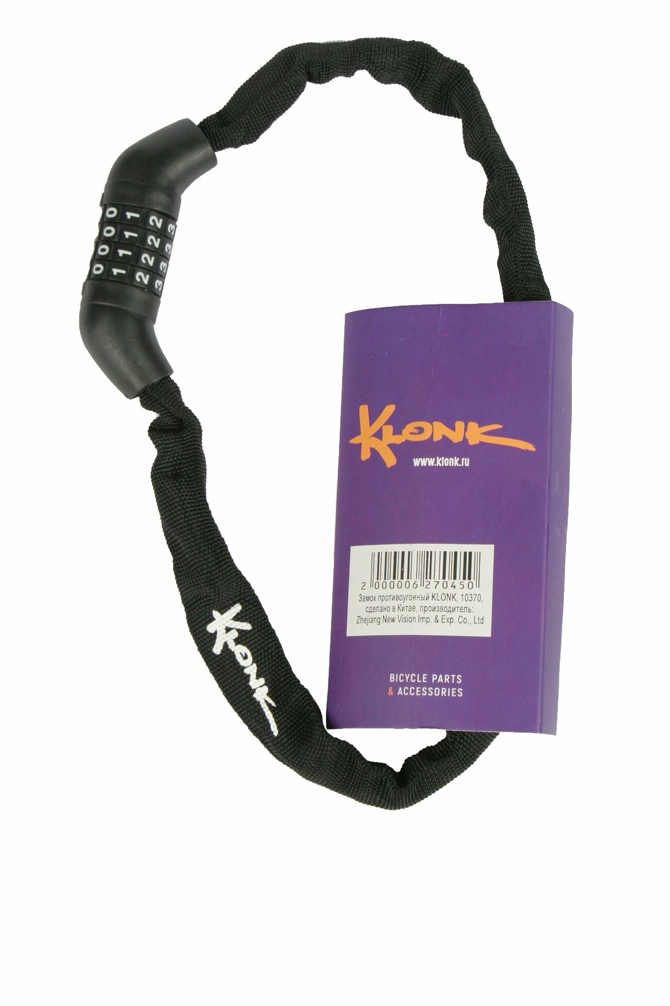Замок противоугонный - цепь 4 x 650 мм, кодовый, тканевая оплетка, KLONK, 10370 (черный, УТ00025399)